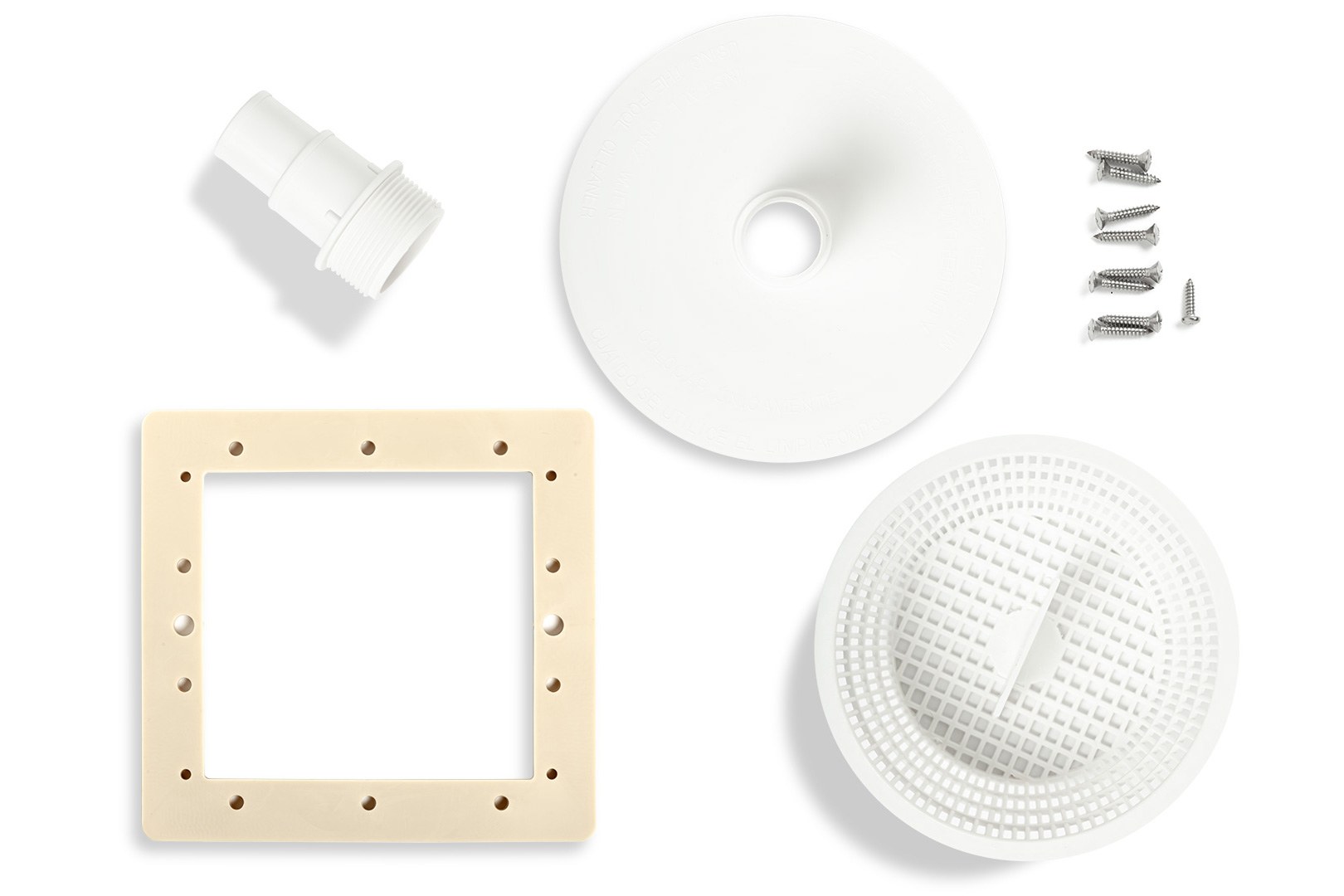 - Komplettset mit Zubehör: Inklusive Schlauchanschluss (Ø 32mm & 38mm), Vakuumplatte, Skimmerkorb, Flanschset & Einlaufdüse