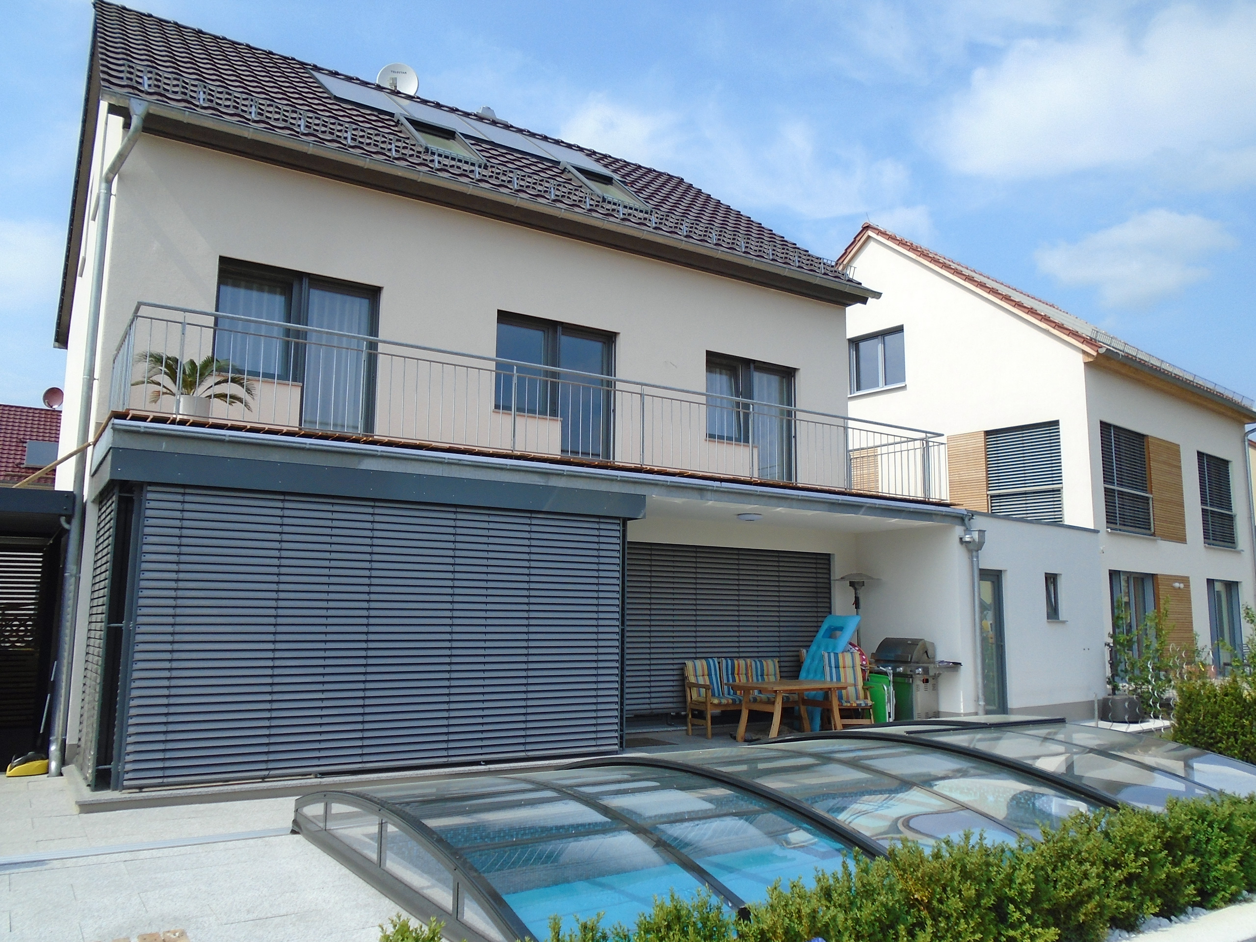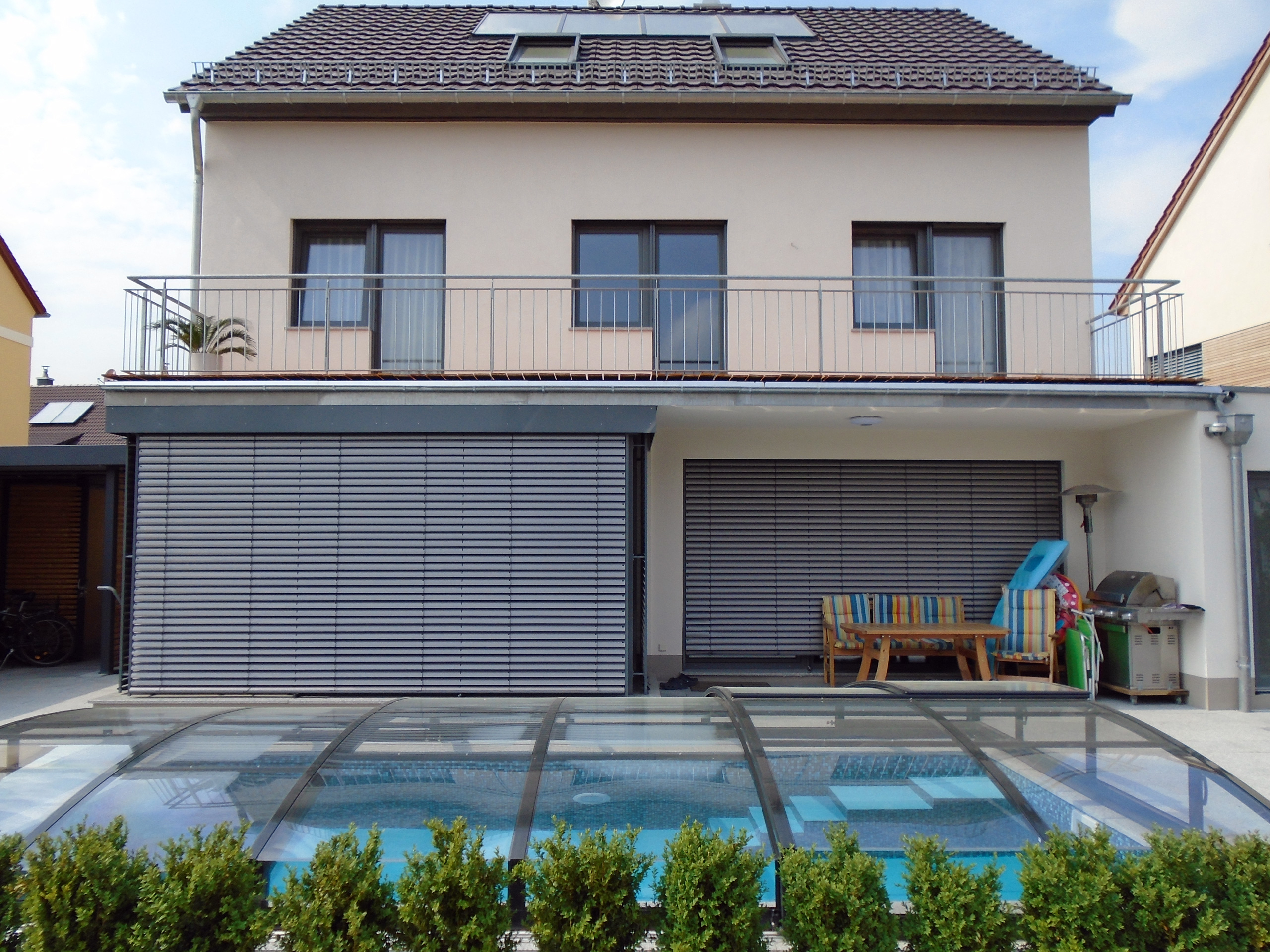 Außenbecken 3x6x1,5m mit gerade Treppe und Schwimmbadüberdachung Stuttgart