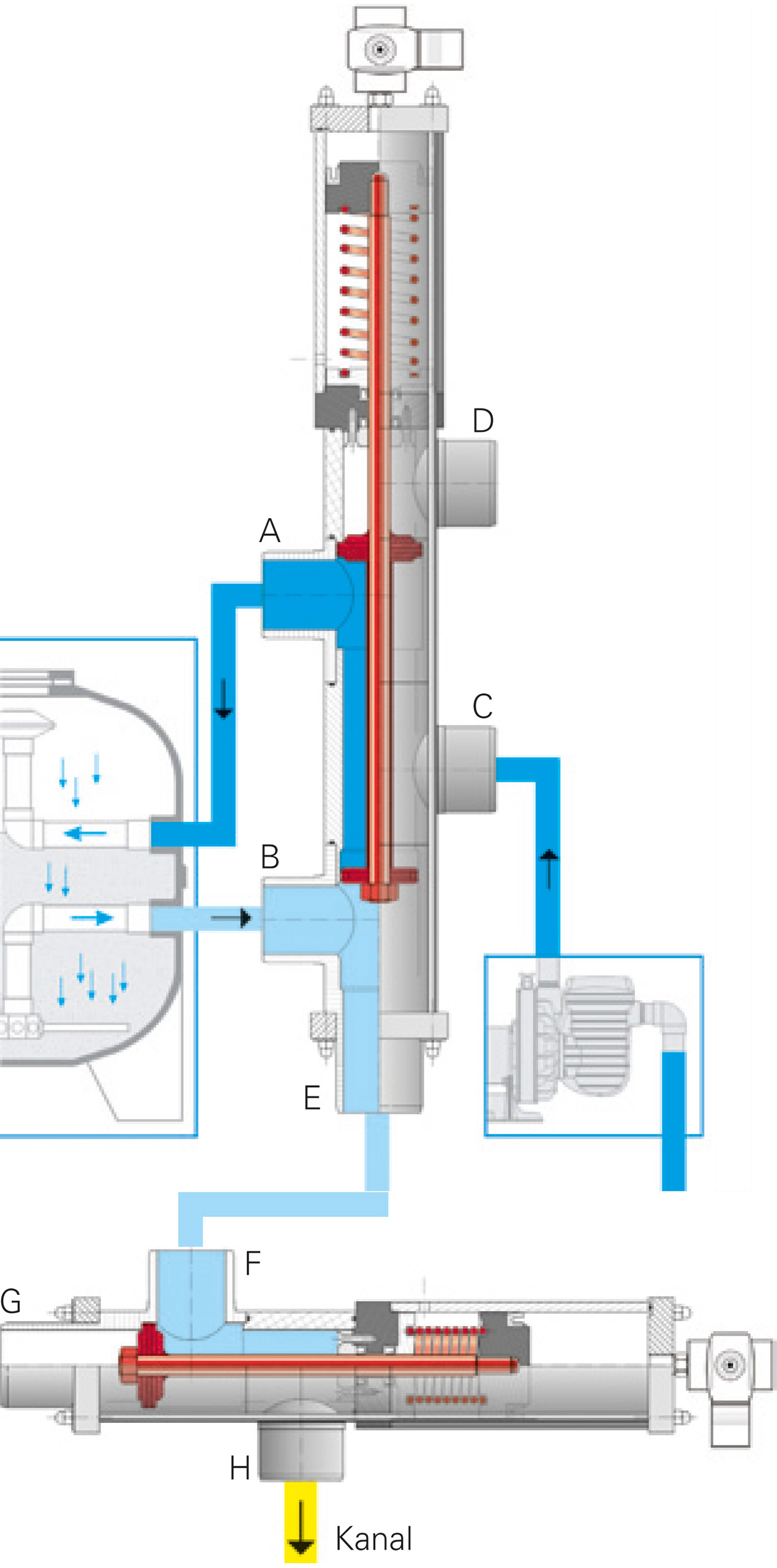 • ohne Stromzufuhr ist das Ventil geschlossen, das Becken kann nicht unabsichtlich geleert werden