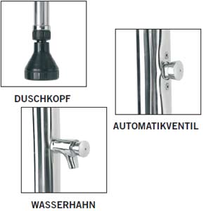 Dusche Standard V2A mit Automatikventil und Entnahmehahn