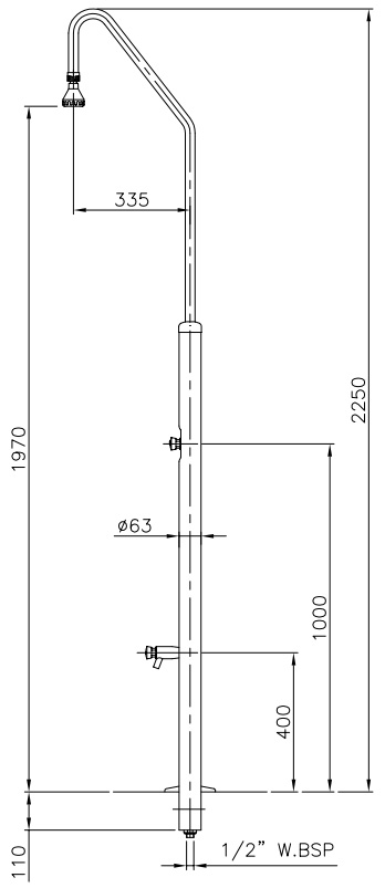 Kaltwasserdusche aus poliertem Edelstahlrohr (V2A)