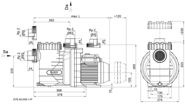 | Anschluß Saugseite/Druckseite | Ø 63 mm Klebemuffe + 1 1/2" IG |