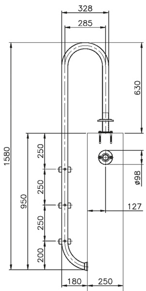 Lieferung inkl. Leiterendstücken zur Flanschbefestigung.