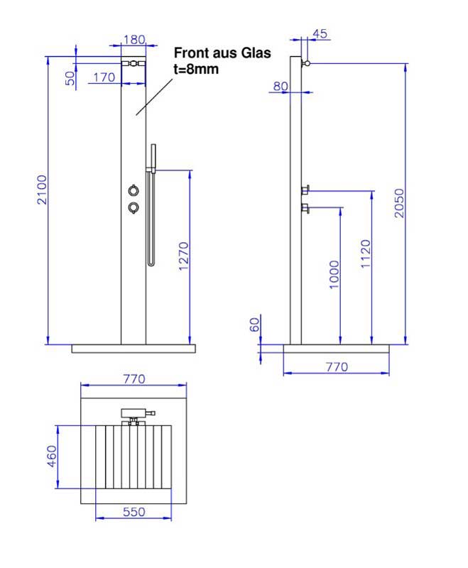 | Höhe Boden bis Duschkopf: | 2,05 m |