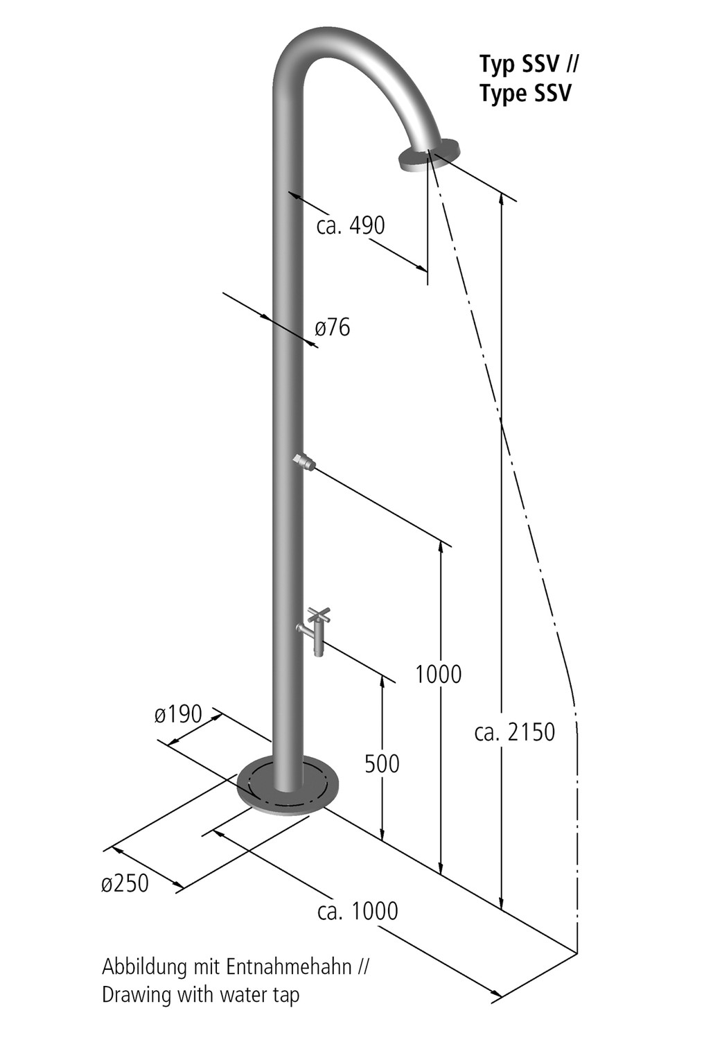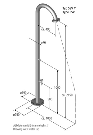 Edelstahl V2A, geschliffen, d= 76 mm, Schlauchanschluß 3/4"