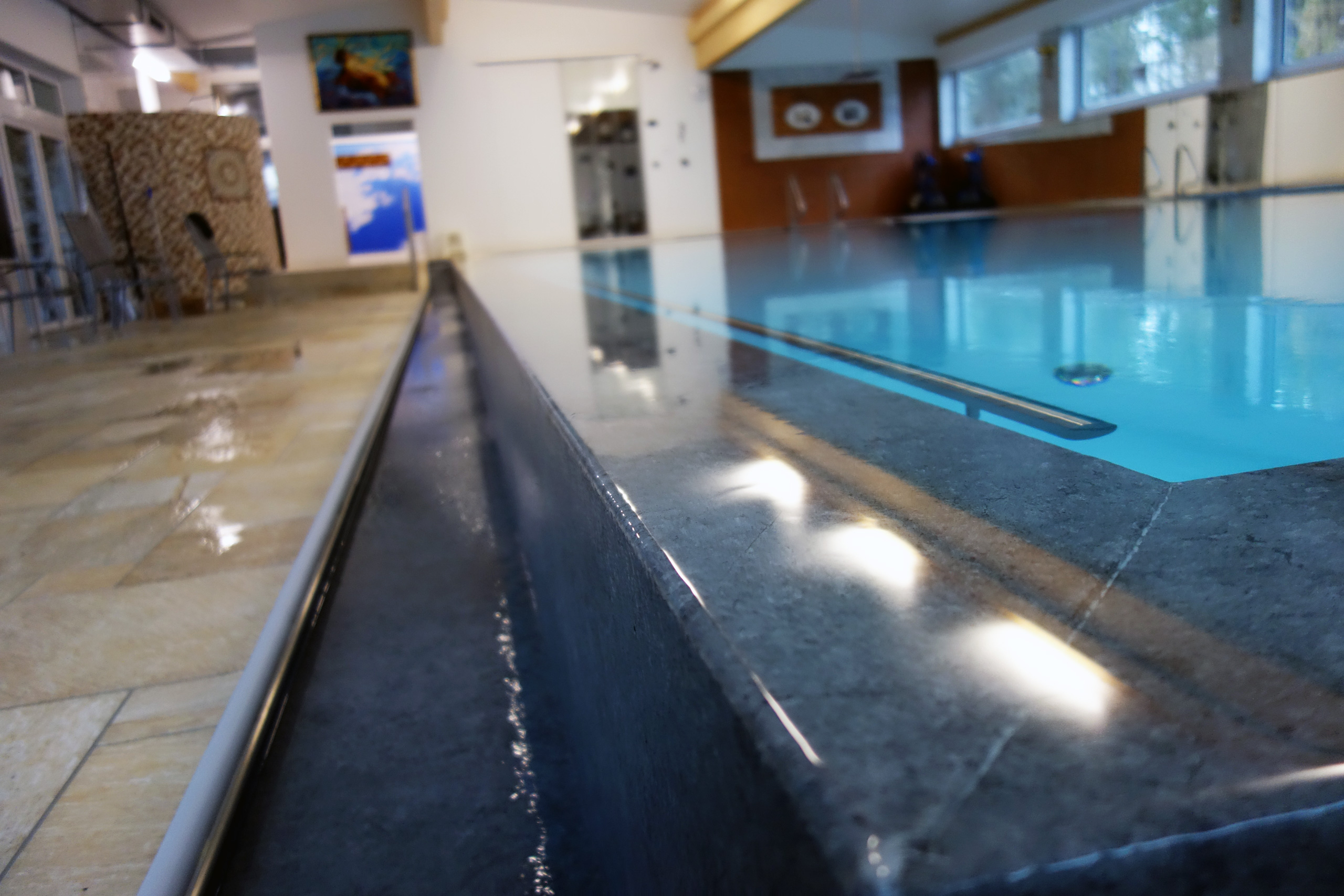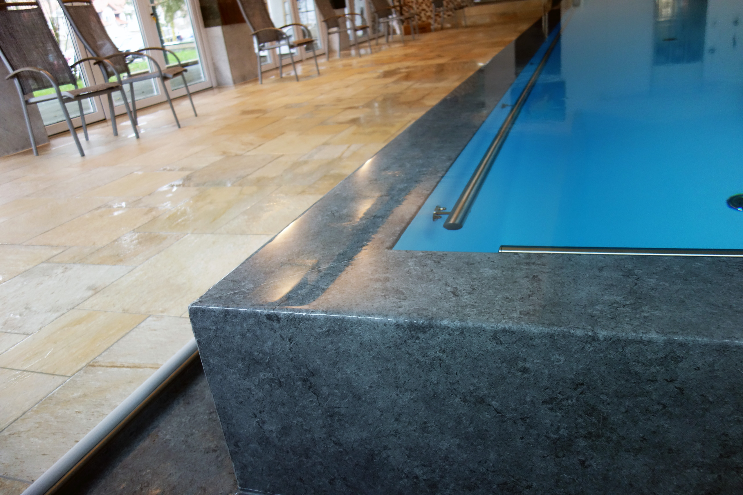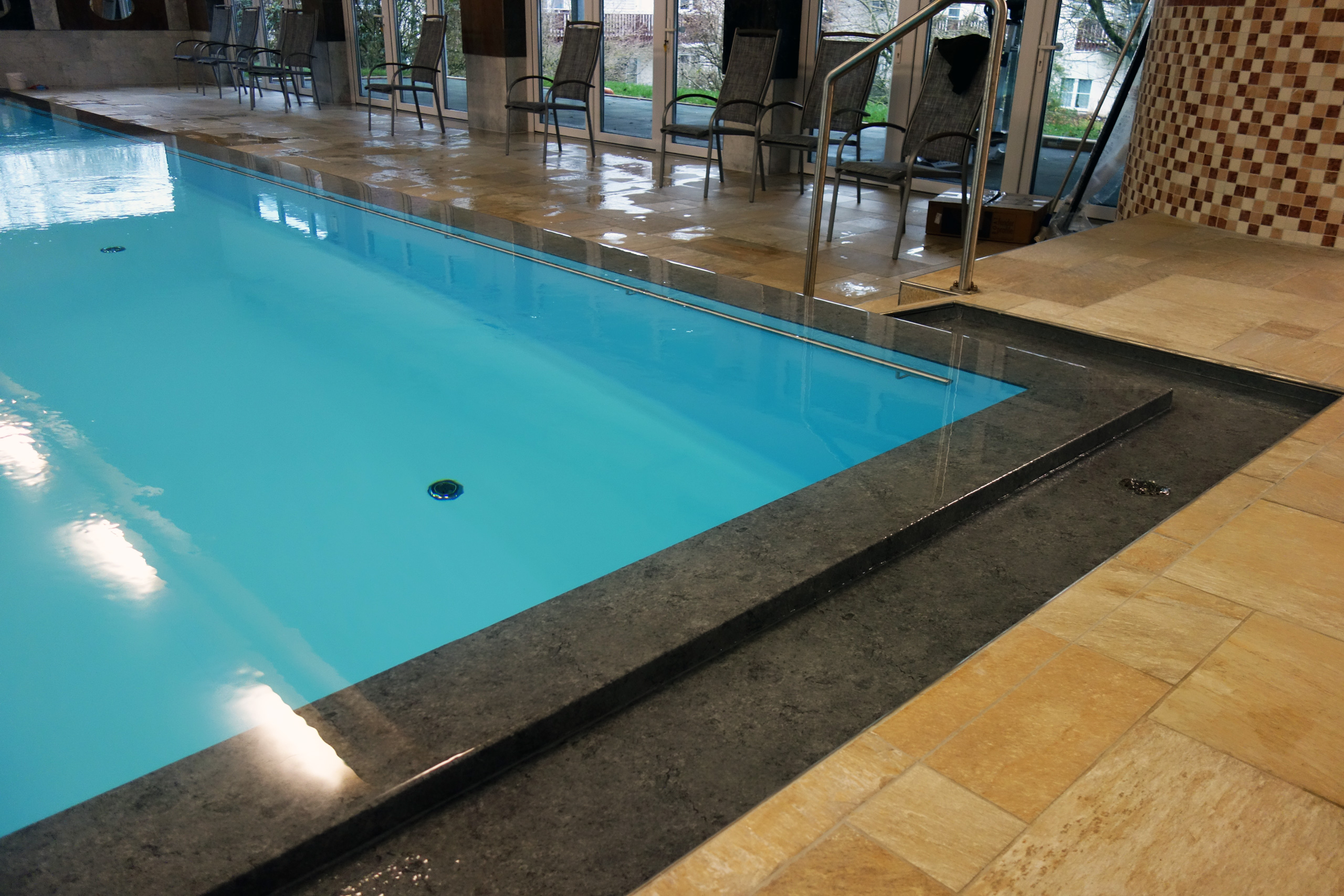 Hallenbad Überlaufbecken 5,5x14,5x1,26m mit Edelstahltreppe und Handlauf