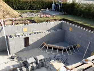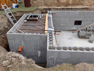 Für den Selbstbauer eignen sich am besten die Schalbetonsteine. Die Wandstärke sollte hierbei 25 cm betragen.