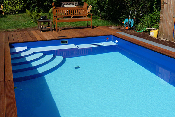 Bei den von uns präferierten Betonbecken sind viele Geometrien möglich. Durch die individuelle Herstellung vor Ort, können wir jede Wassertiefe, Stufentiefe und Sitzbanktiefe herstellen. Die Beckenform ist allerdings meist rechteckig, dies ist einerseits der Wirtschaftlichkeit geschuldet, zum anderen der Tatsache dass Rechteckbecken einfacher abzudecken sind.