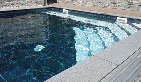 Der Wasserstand im Becken befindet sich beim Skimmer-System konstruktiv bedingt ca. 15 - 20 cm unter dem Beckenumgang. Dadurch kann sich ein Schmutzfilm an der Beckenwand im Bereich der Wasseroberfläche bilden, der das Beckenwasser zusätzlich belastet.