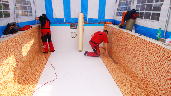 Bei Becken mit Folienauskleidung wird das Beckeninnere mit einer speziellen Poolfolie ausgekleidet. Diese Art von Becken ist besonders flexibel, da die Folie in nahezu jeder Form und Größe verarbeitet werden kann. Sie ist zudem leicht auszutauschen, falls sie beschädigt wird.