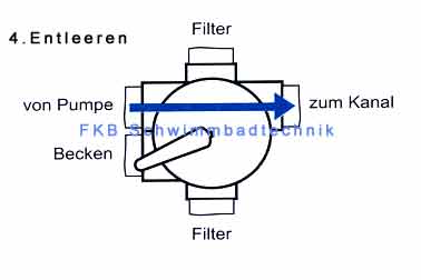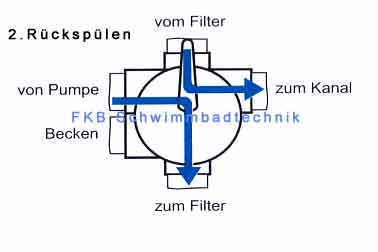 Sobald der Druck auf Ihrem Manometer um 0,3 bar angestiegen ist, muss eine "Rückspülung" durchgeführt werden. Sollte der Manometerdruck im Betrieb nicht ansteigen, (z.B. bei Hallenbädern mit geringer Schmutzbelastung) wird eine einmal wöchentliche "Rückspülung" empfohlen. |