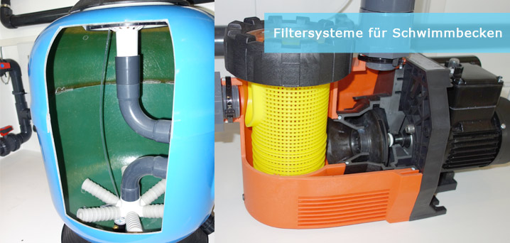 Bei der mechanisch-physikalischen Reinigung des Schwimmbadwassers durch Filtration werden alle sichtbaren Verschmutzungsstoffe sowie geflockte Mikroorganismen aus dem Wasser gefiltert.