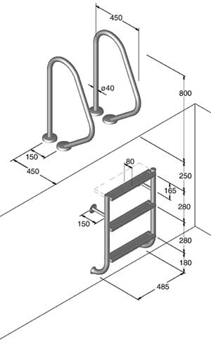 Gegenflansche für Polyester- oder Folienbecken, das Leiternteil kann auch mit den Griffbögen der Modellreihe 16 kombiniert werden