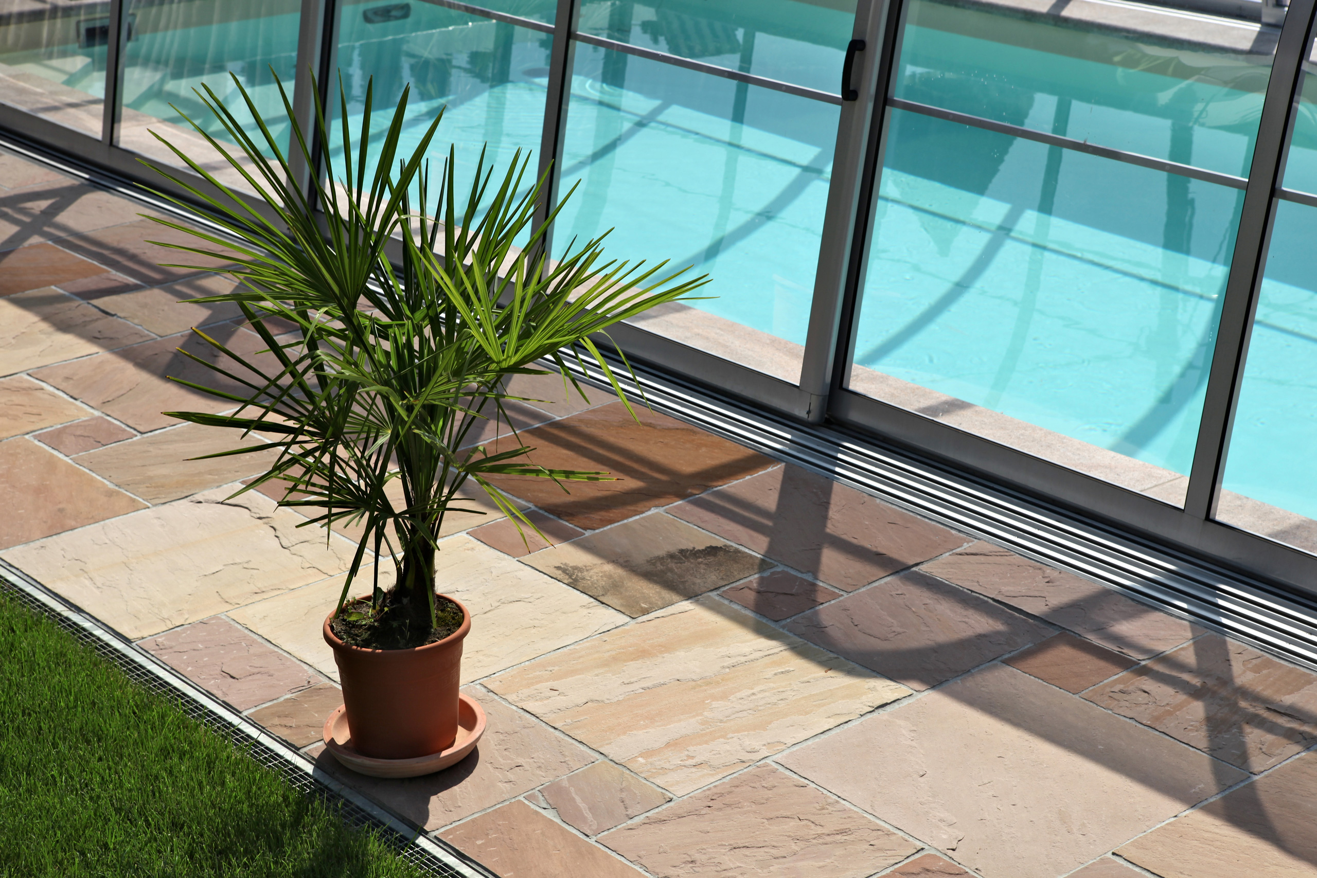 Die absperrbare Poolüberdachung garantiert Sicherheit für Kinder und Haustiere.