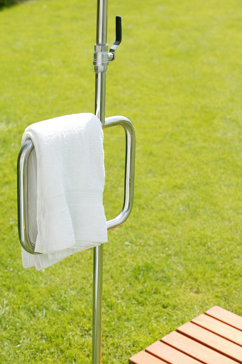 Der Clou: durch die besondere Ausführung in der Form der Dusche ist ein Handtuchhalter inklusive.