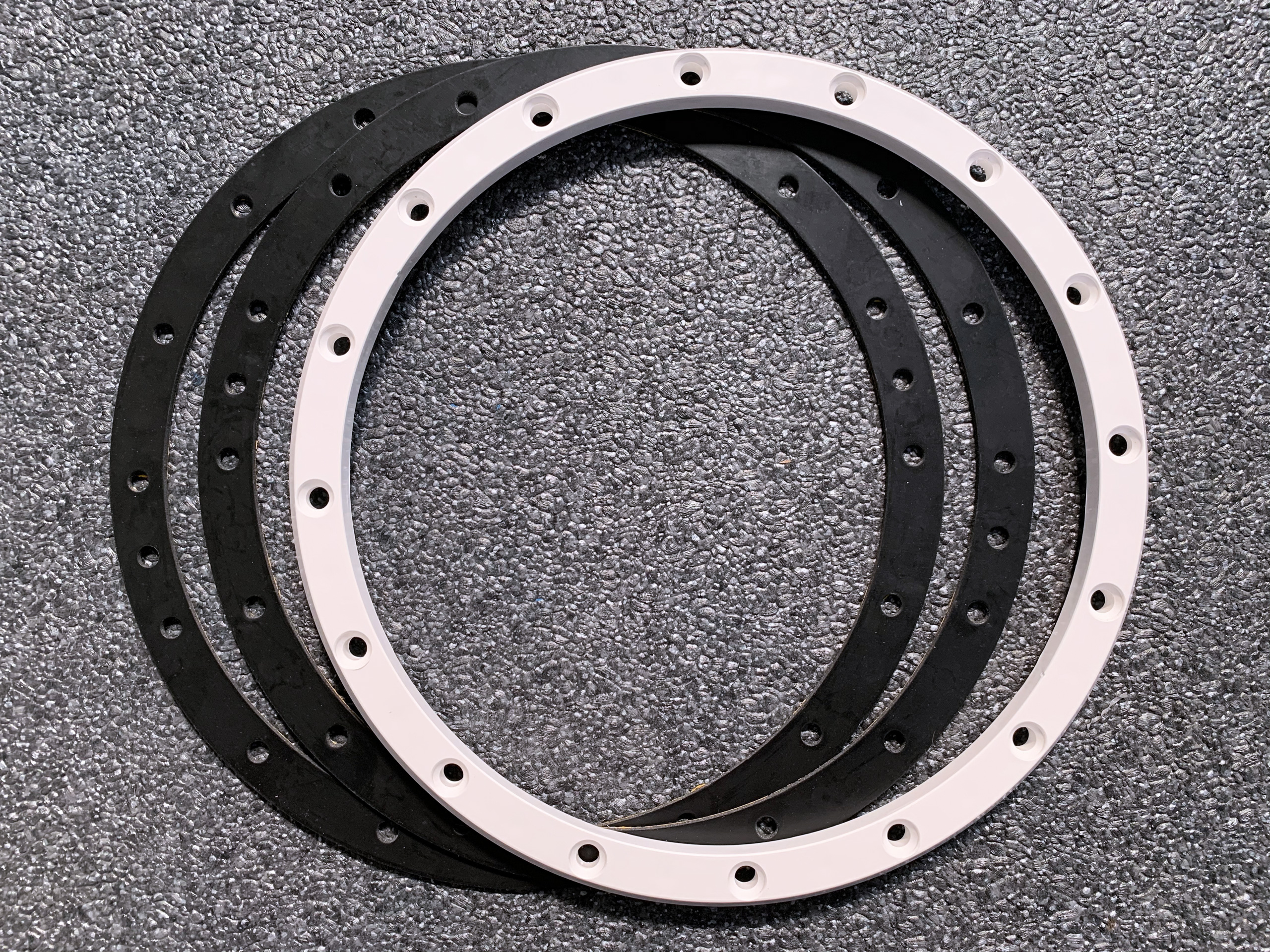 Ausführung mit Flanschrahmen aus ABS Kunststoff und EPDM-Flanschdichtung zum Einbau in Becken mit Folienauskleidung geeignet.