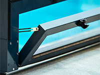 Praktische Belüftungsklappe in der Schlußwand mit einfacher und sicherer Bedienung garantiert notwendige Belüftung der Poolüberdachung.