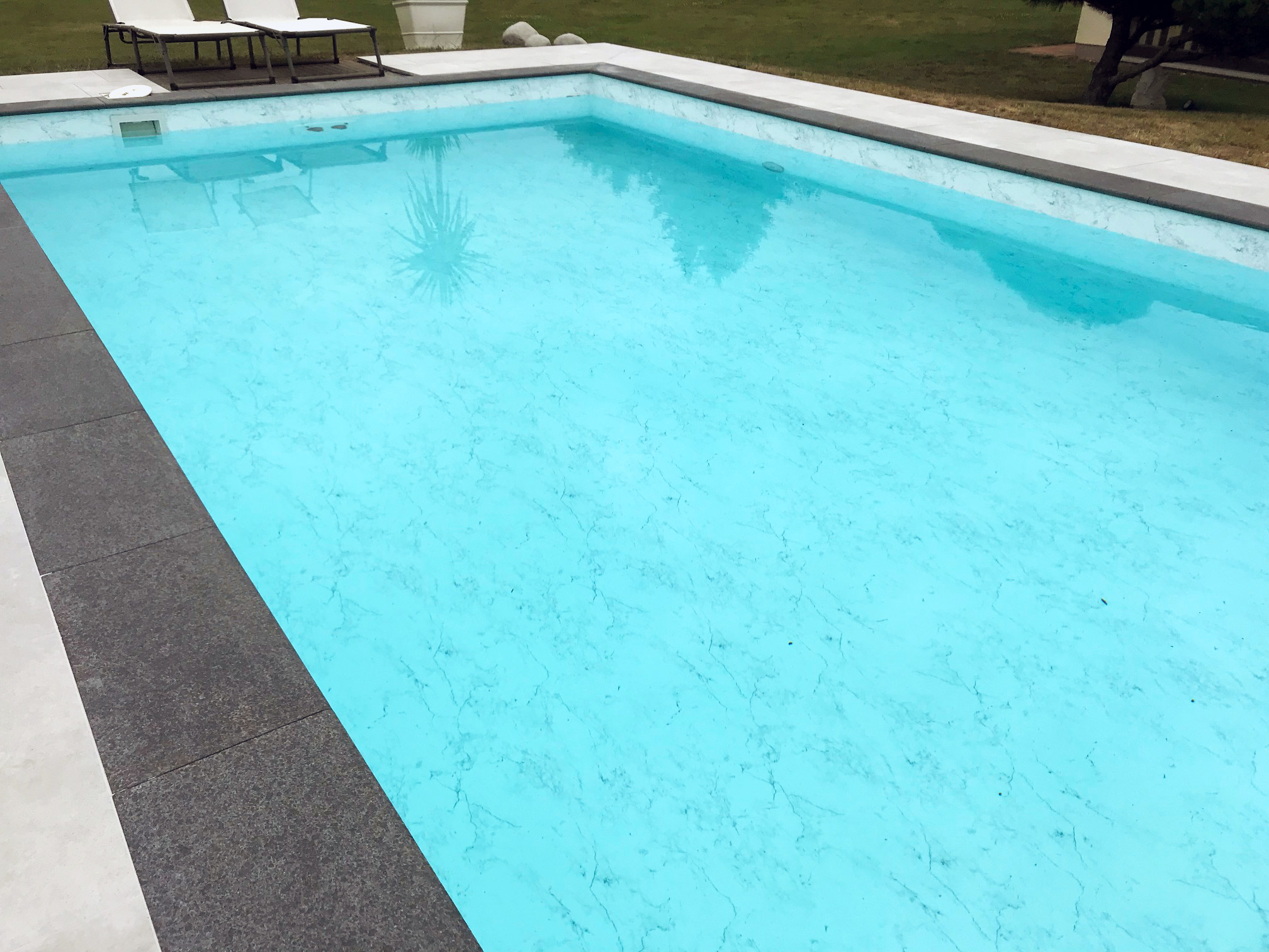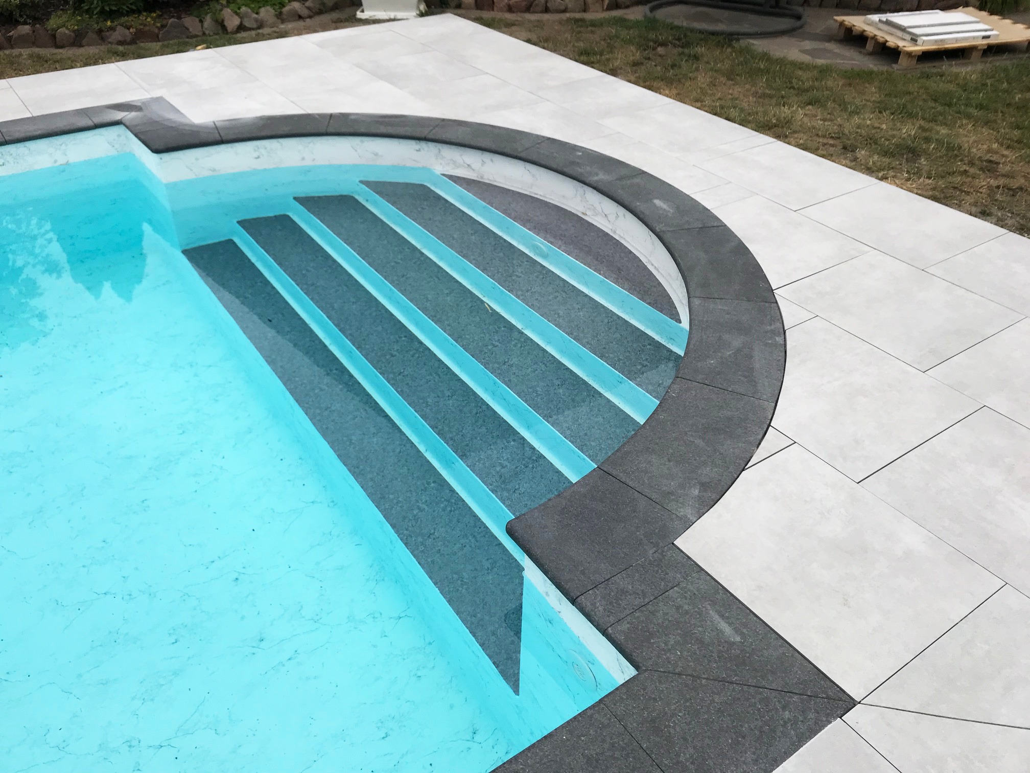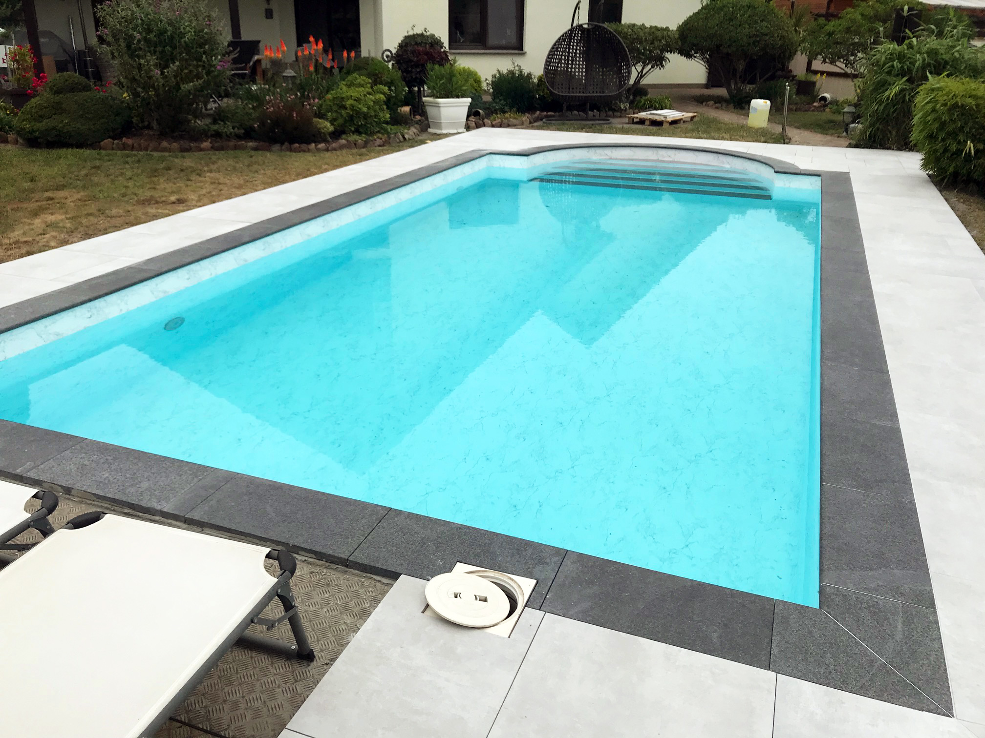 Rechteck-Pool 4x8x1,5m mit außenliegender römischer Treppe
