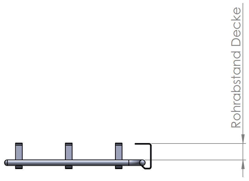 Wir empfehlen Ihnen einen Wandabstand von mind 30 besser 40-45 cm. Der Rohrabstand zur Decke ist frei wählbar zwischen 5 - 25 cm.