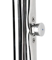 Die Rohre diese Schwimmbad-Dusche sind aus rostfreiem Edelstahl und haben dadurch eine unverwechselbare polierte glänzende Oberflächenbearbeitung.
