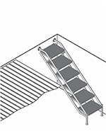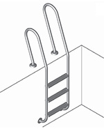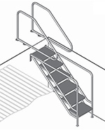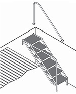 • Tritthöhe 25 cm • Stufenausladung ins Becken 55 cm • Edelstahl Grundplatte 140 x 160 cm • Gewicht (Platte + Stufen) 140 kg