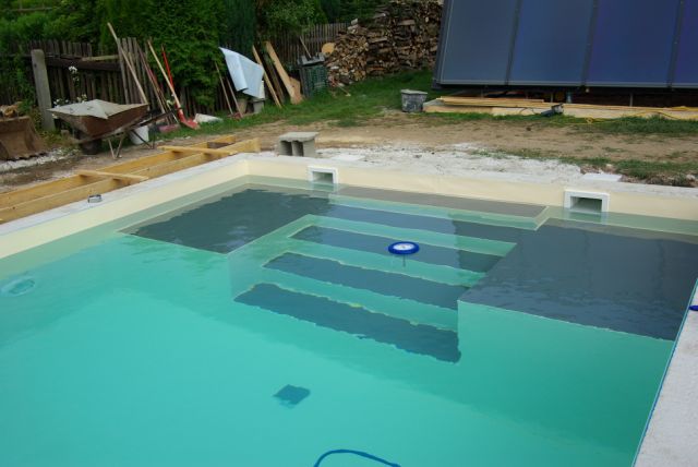 Schwimmbecken 10*4*1,5m mit innenliegender Treppe und Podest
