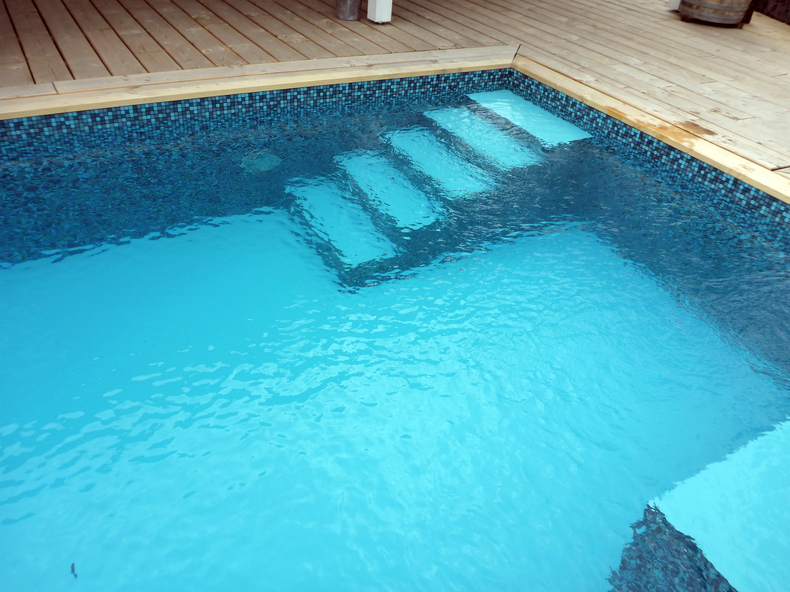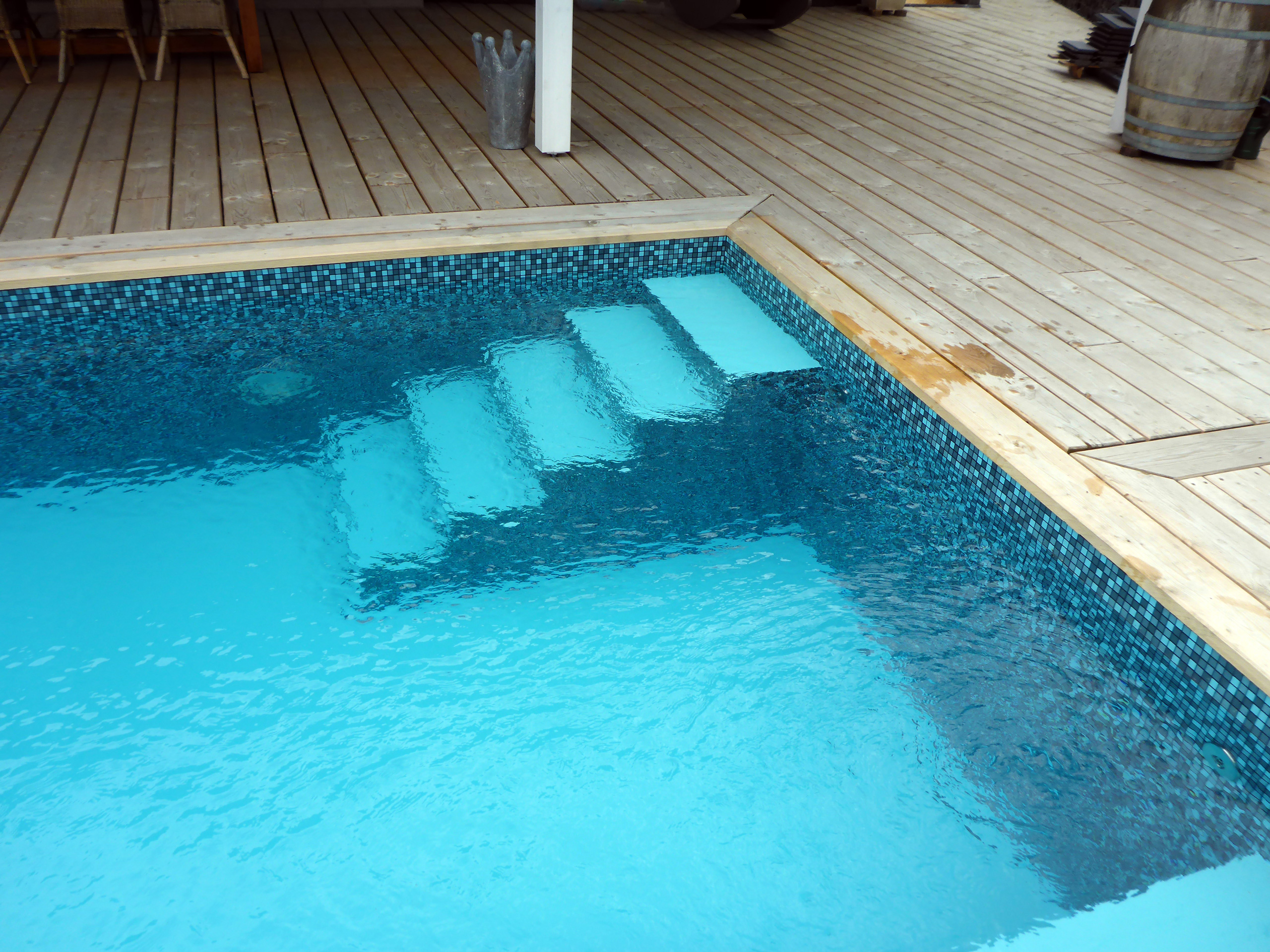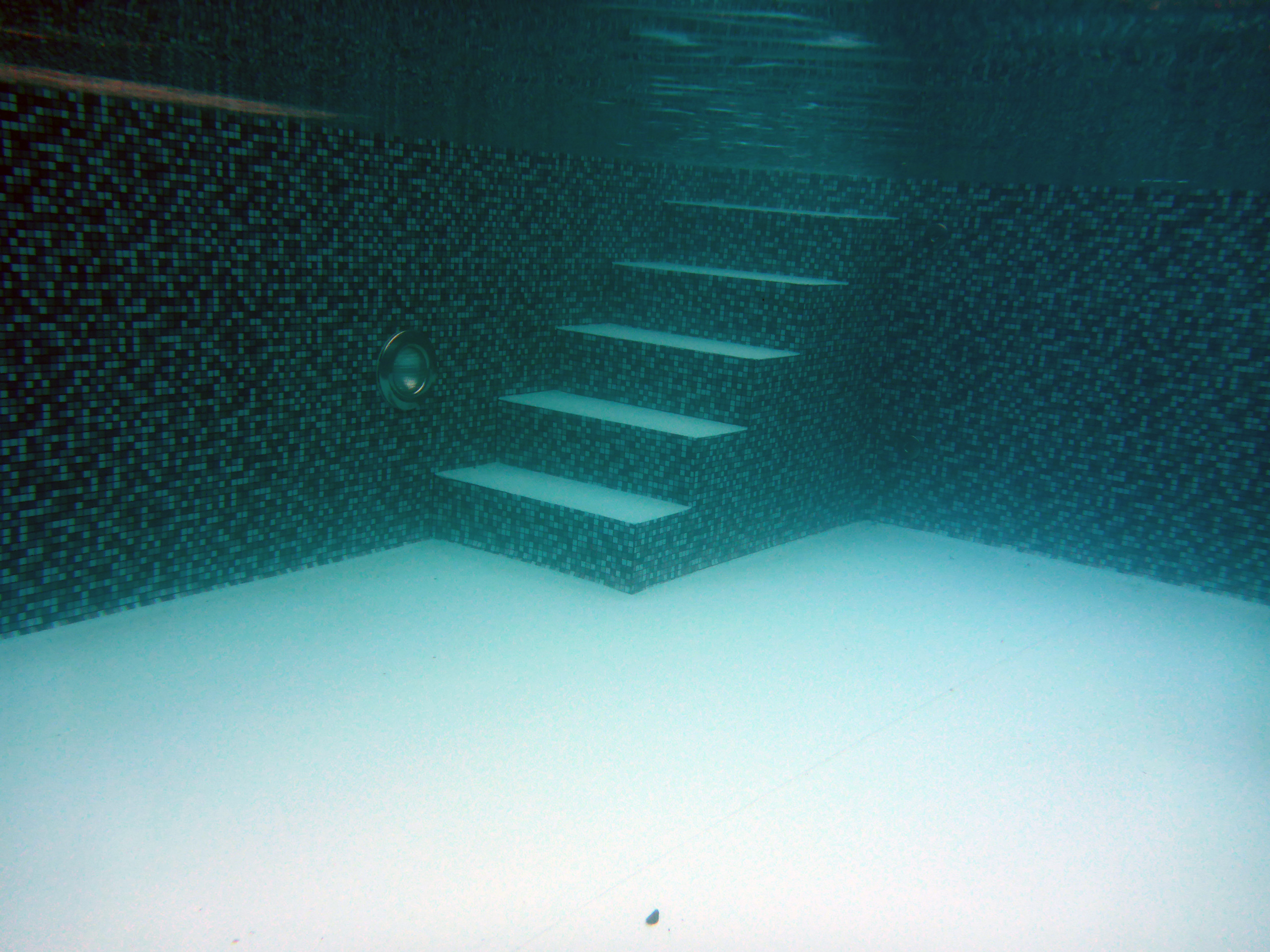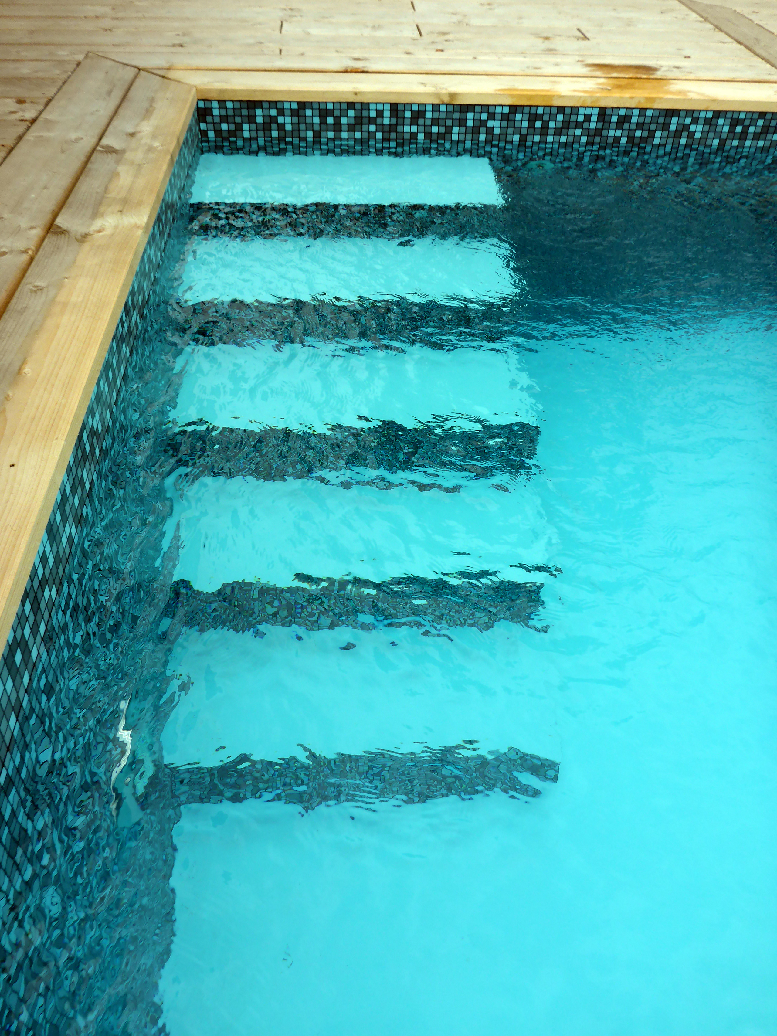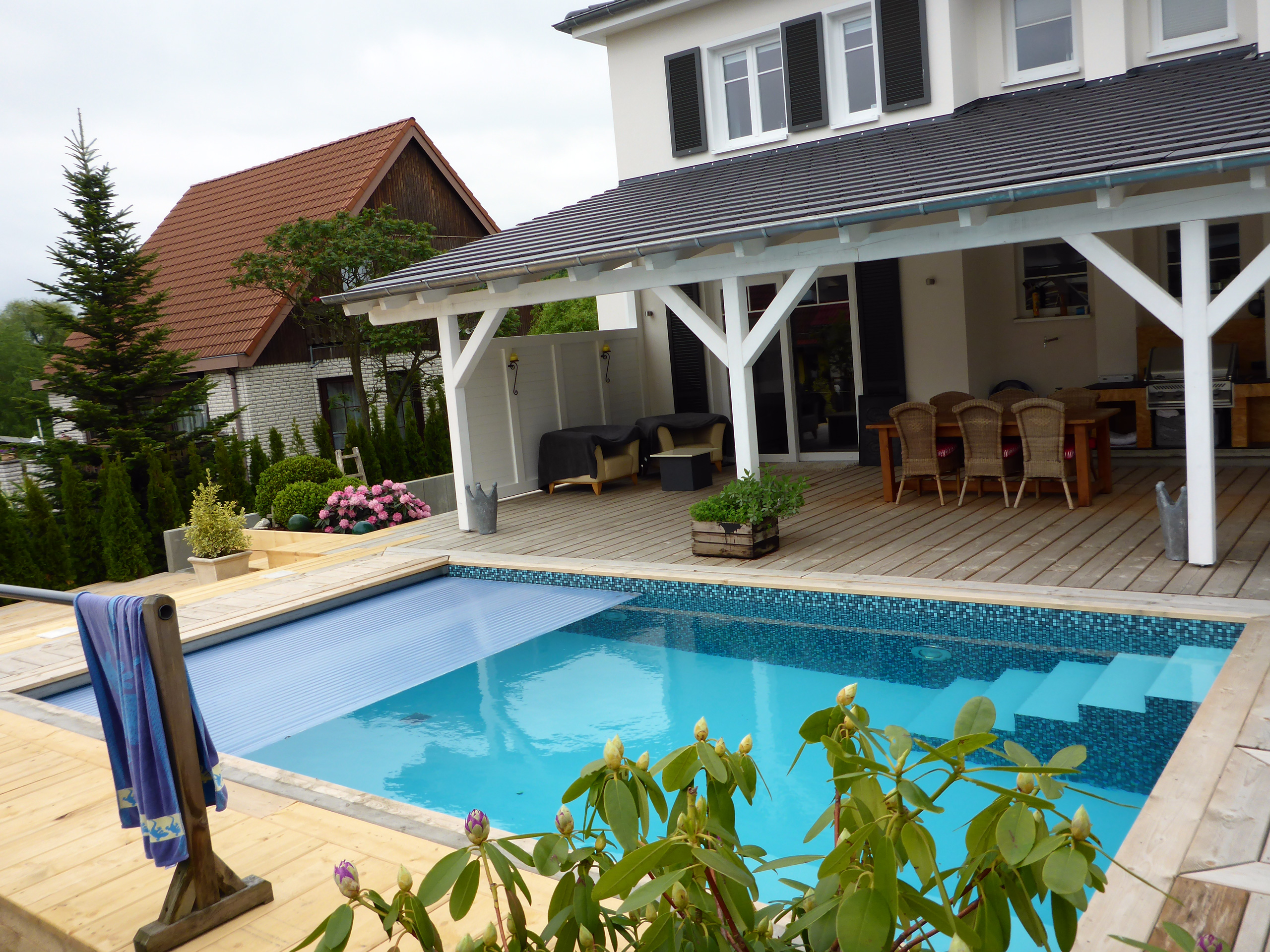 Schwimmbecken 3,8x8x1,5m mit Ecktreppe, Podest und Unterflurrollladen