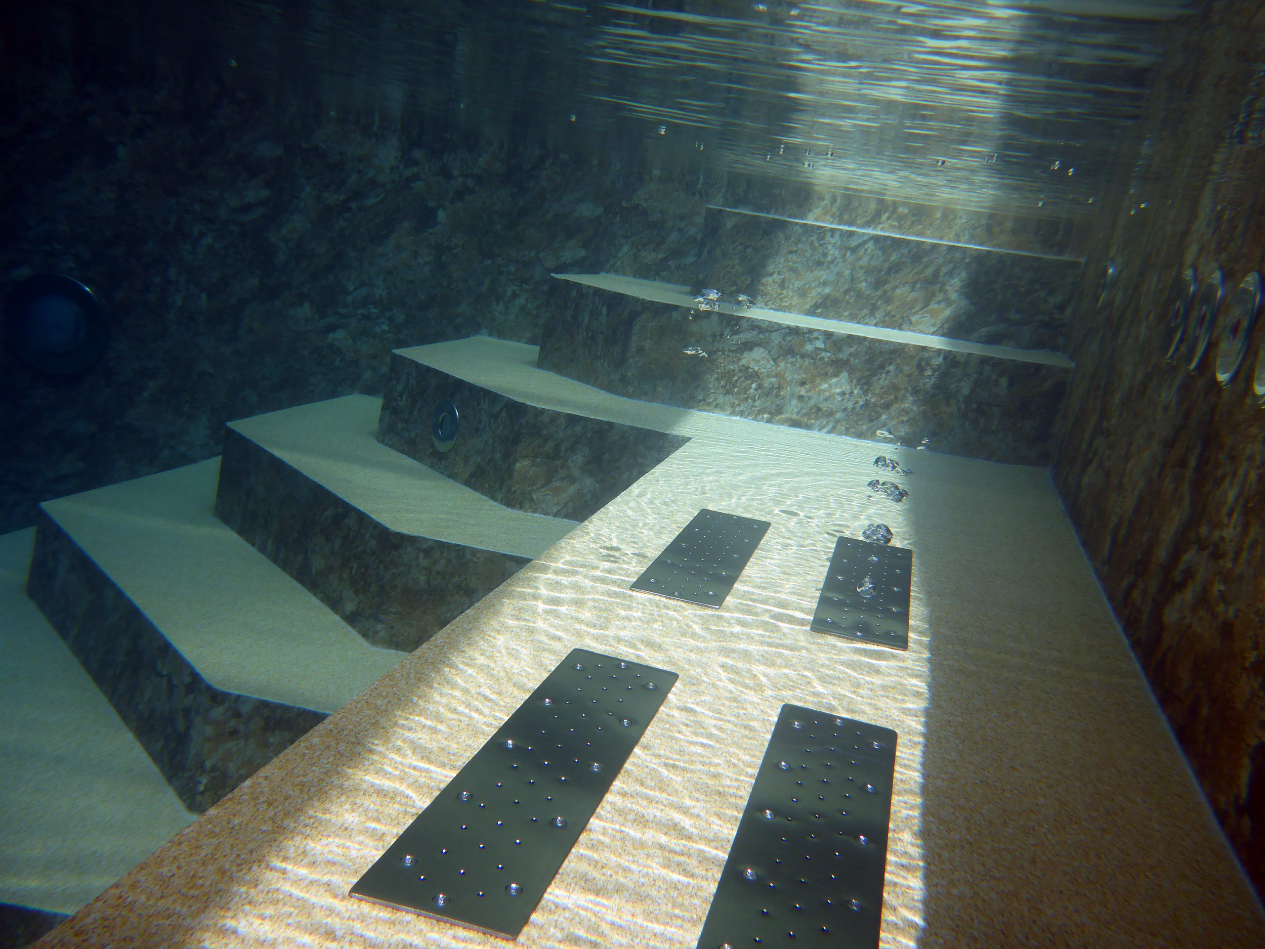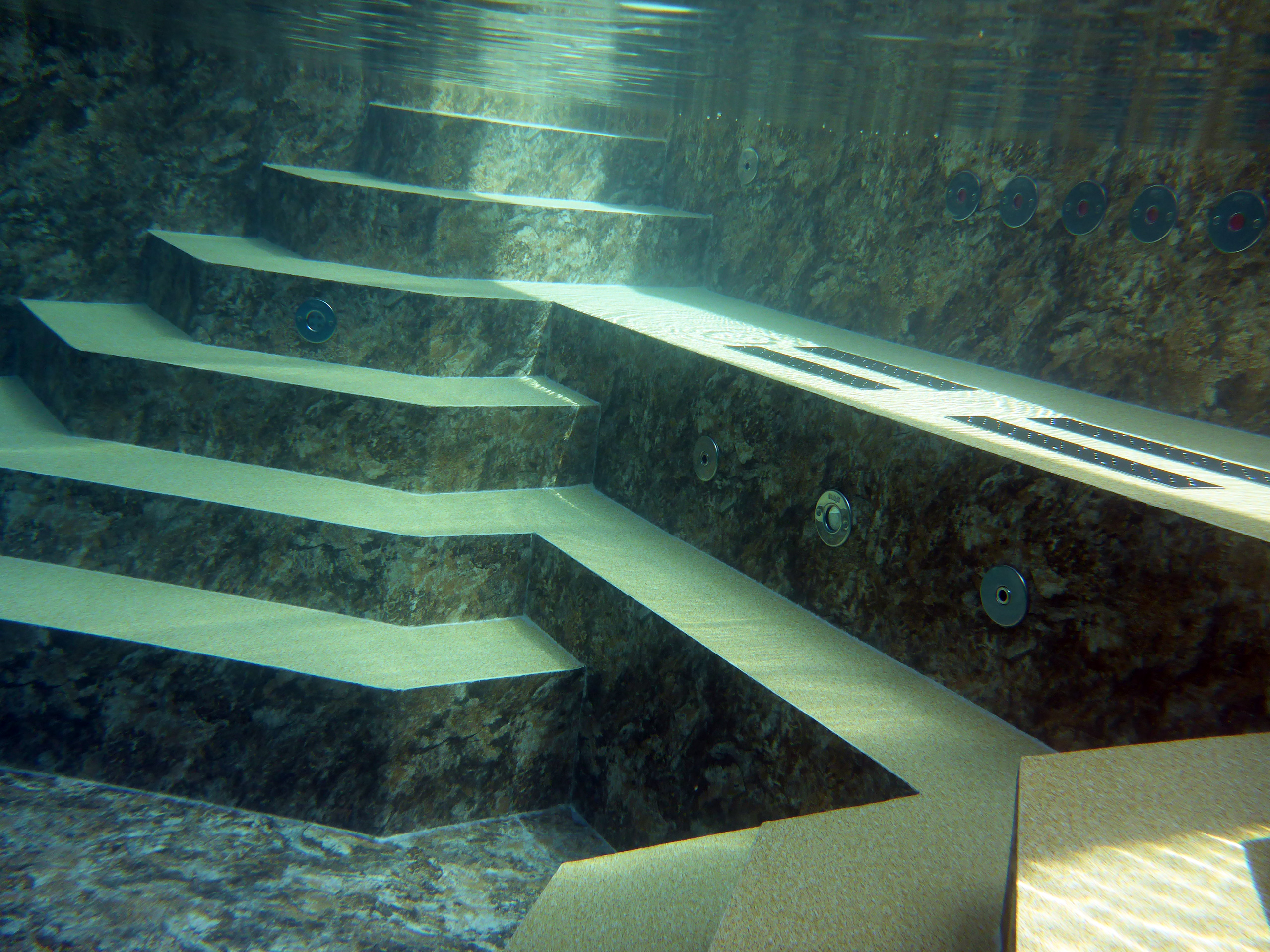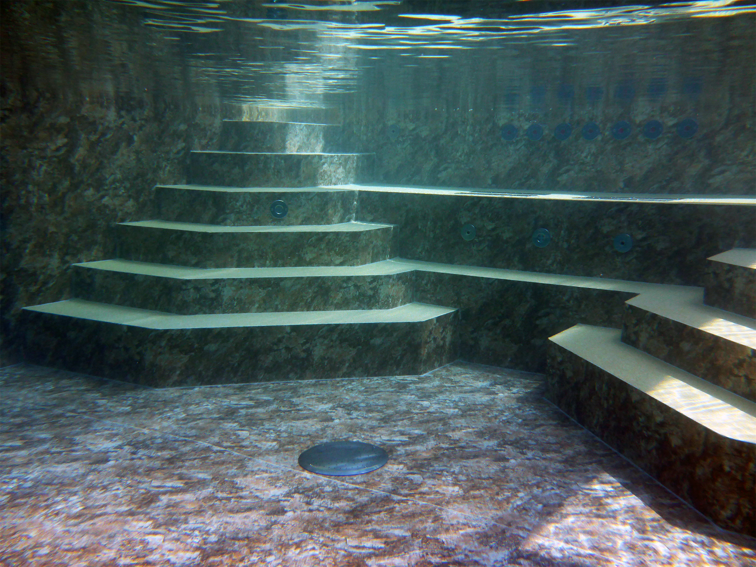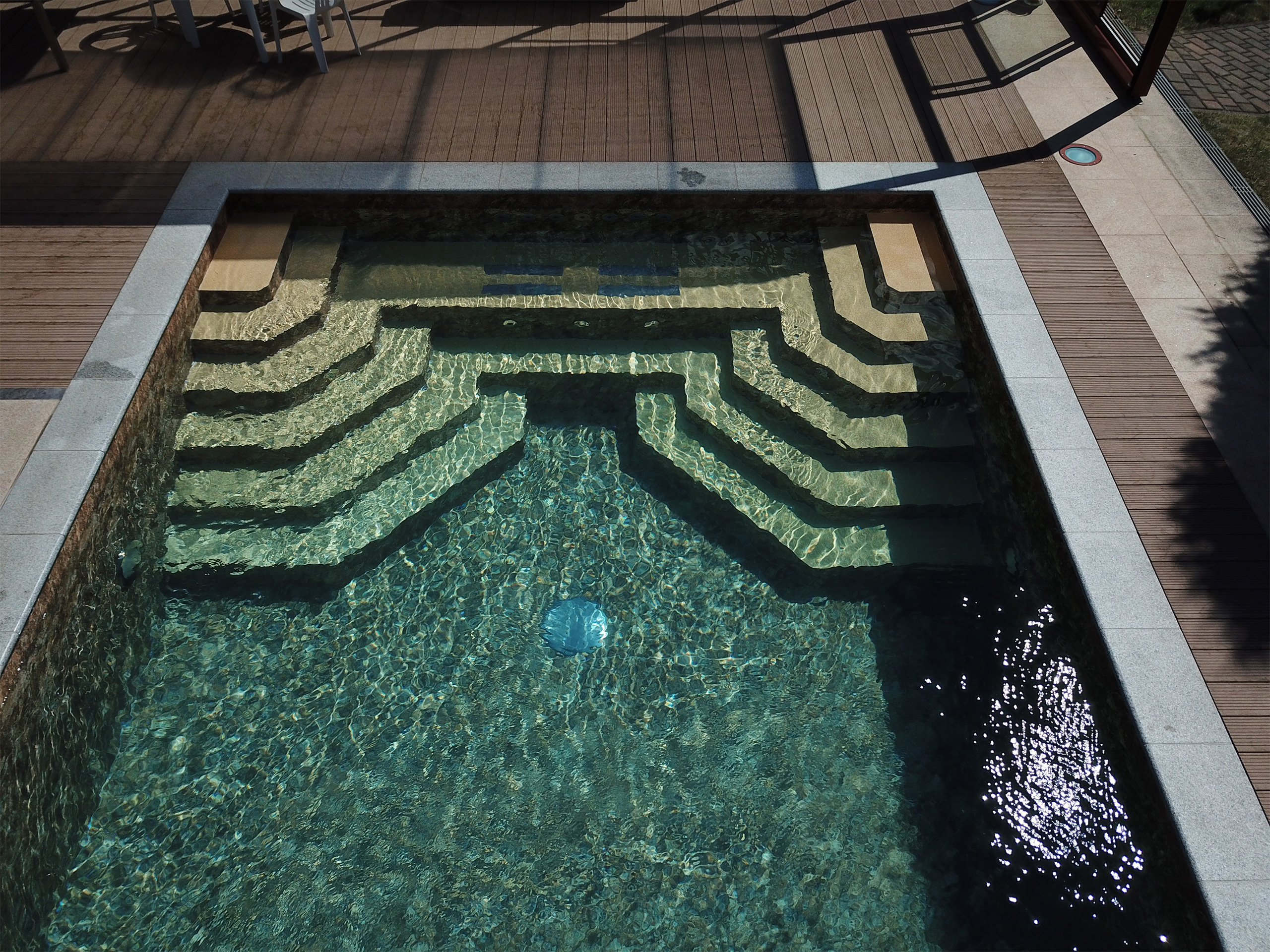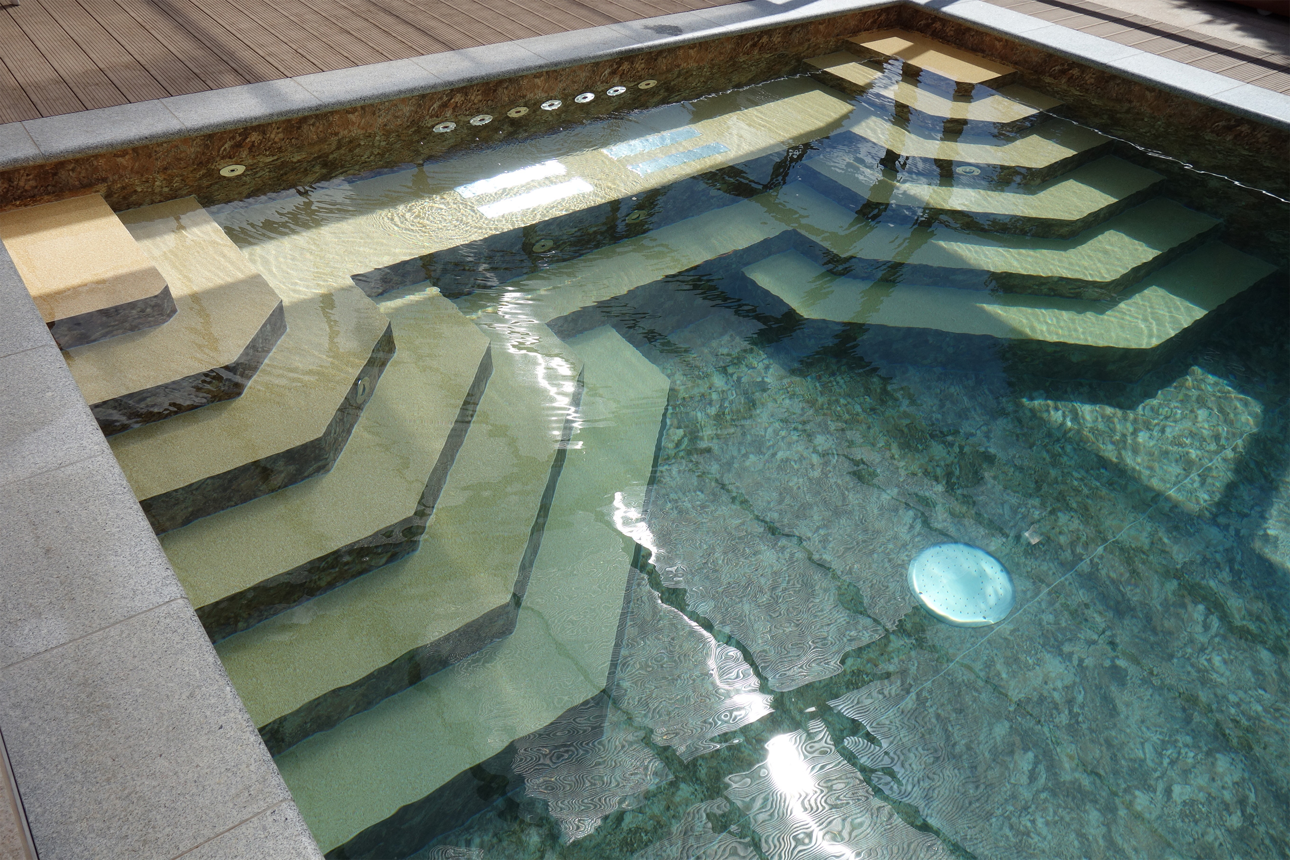 Betonbecken in den Maßen 4,5 x 9 x 1,50 m mit 2x 1/4 Achtecktreppe und Sitzpodest
