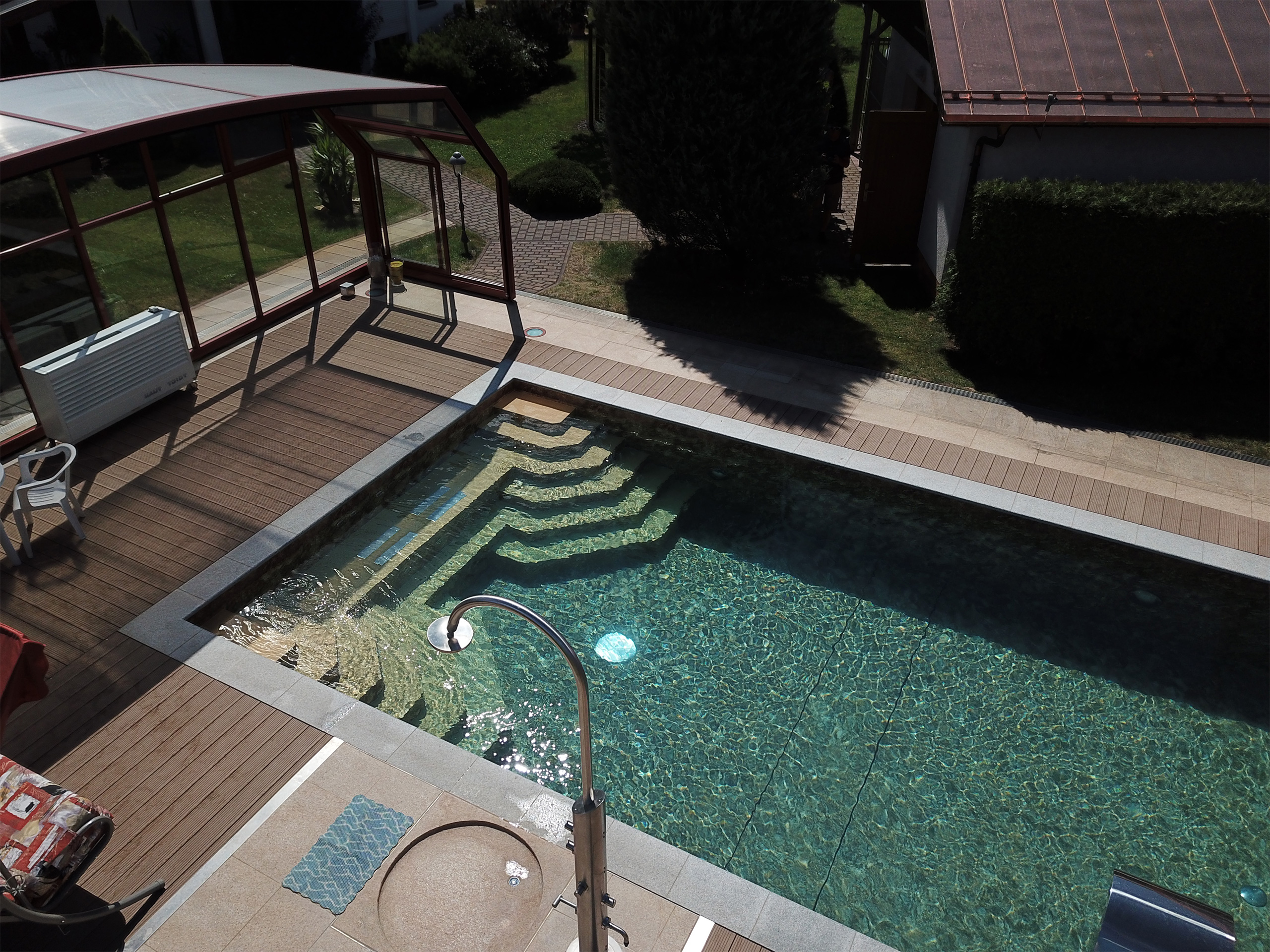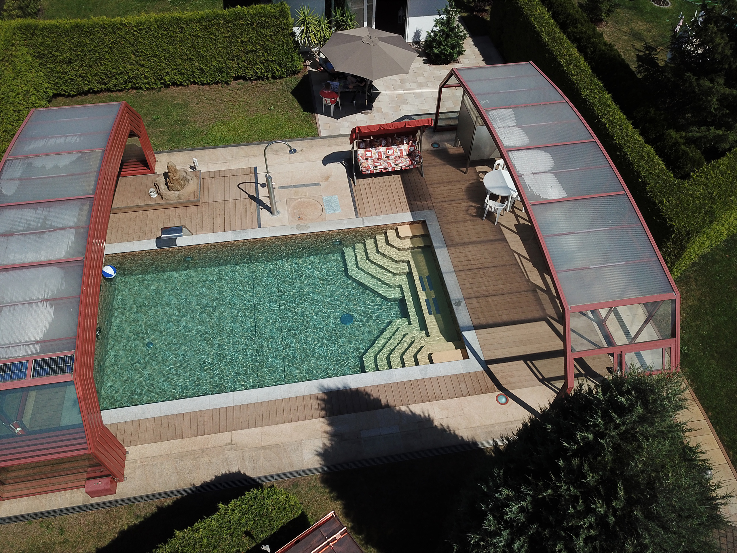 Schwimmbecken 4,5x9x1,50m mit Ecktreppen, Podest und Alkorplan 3D Touch