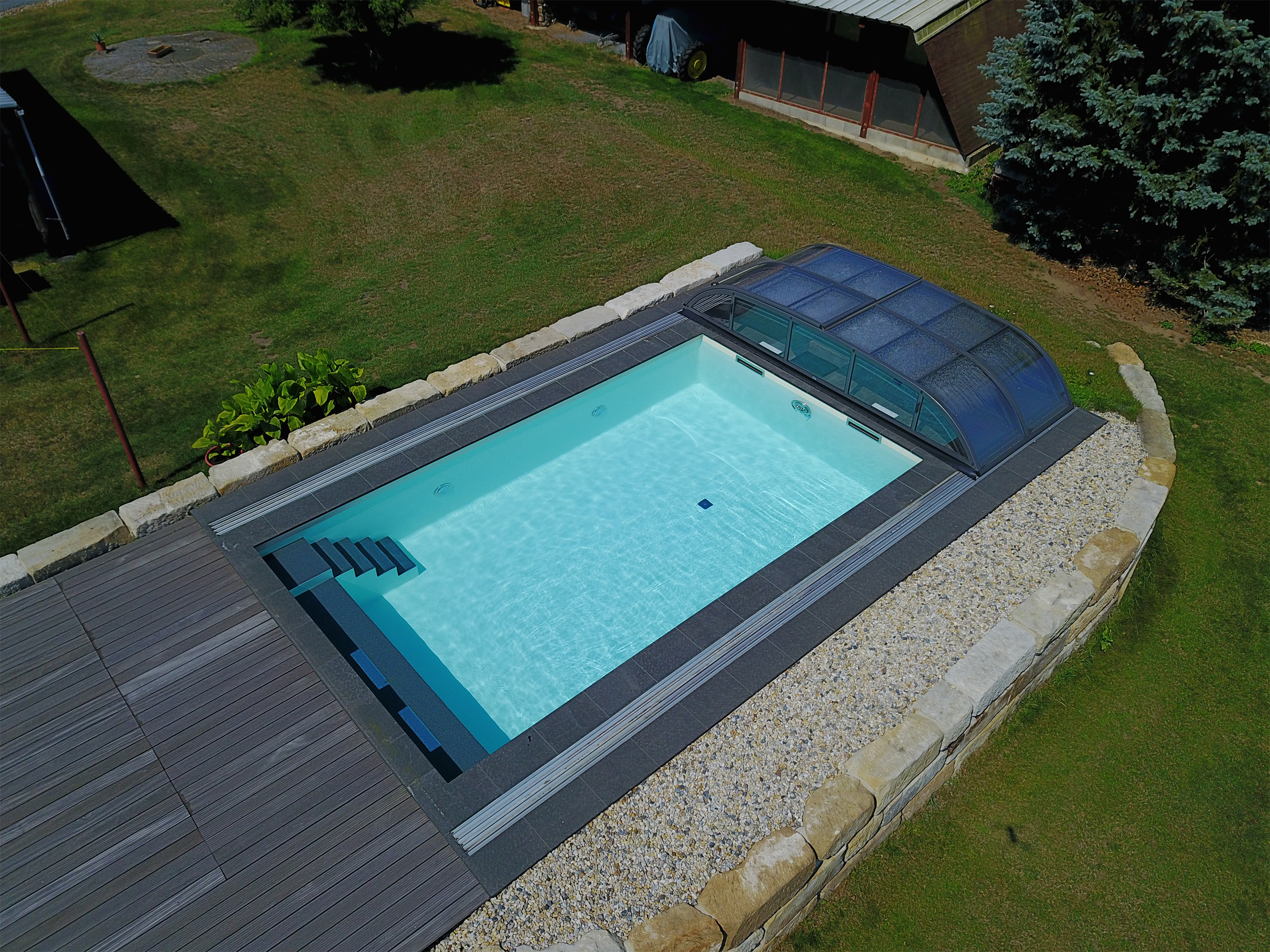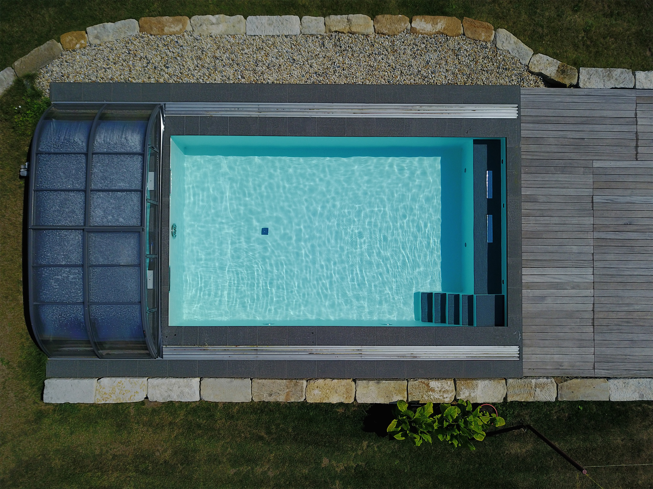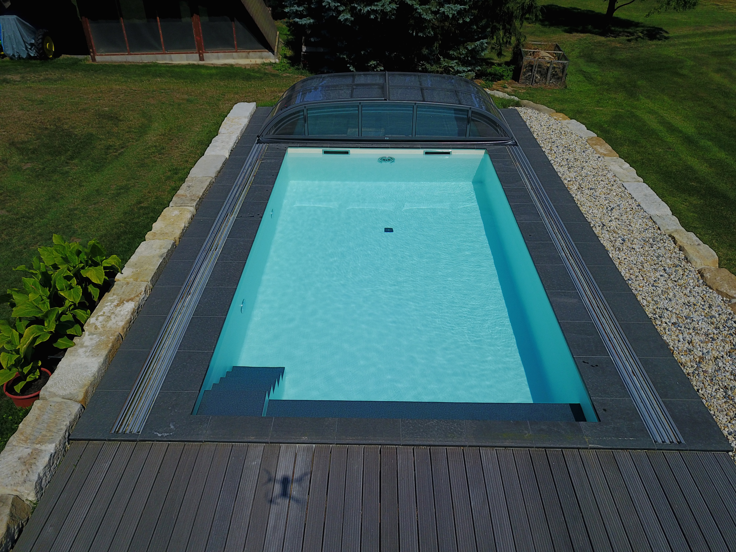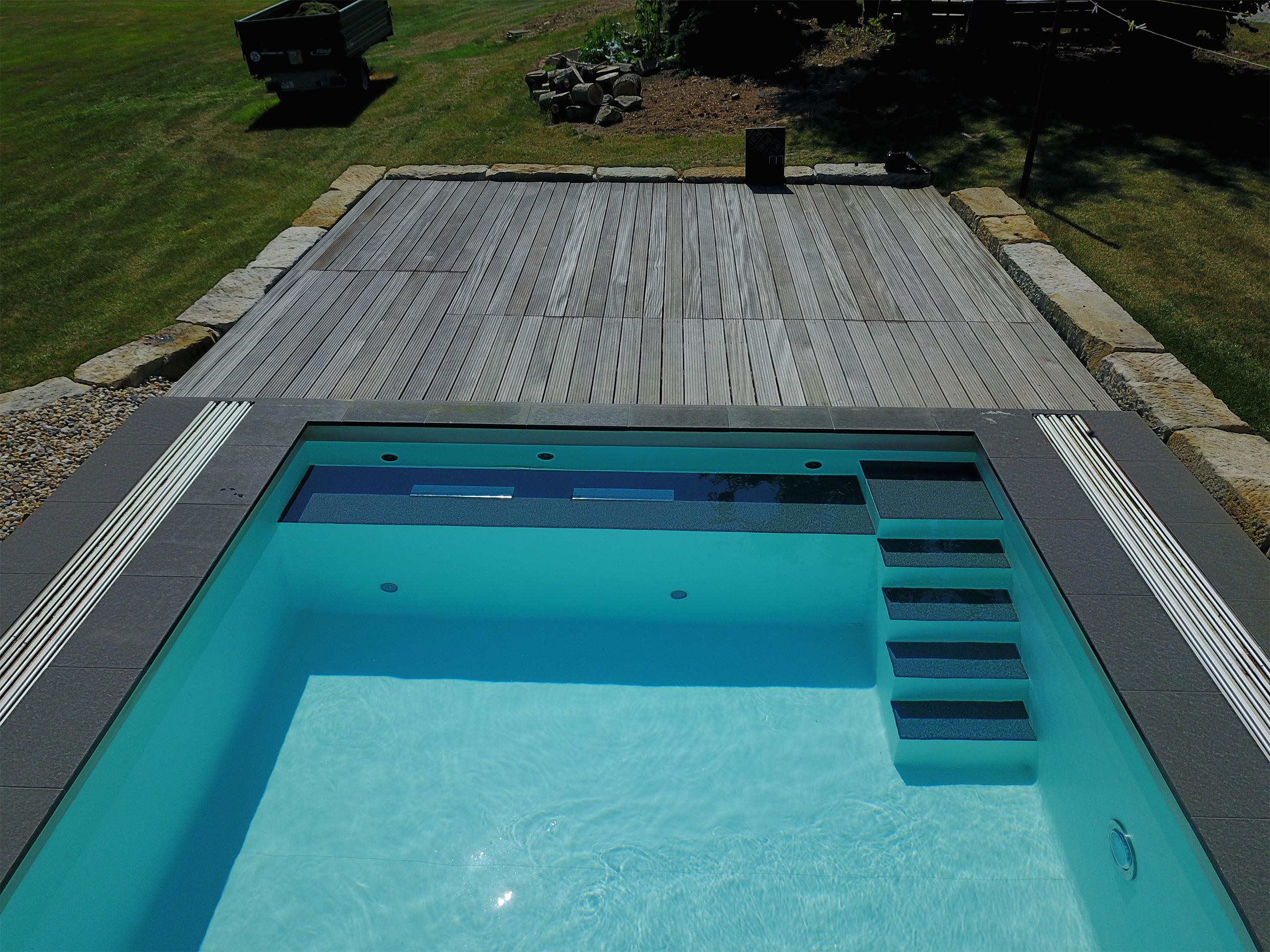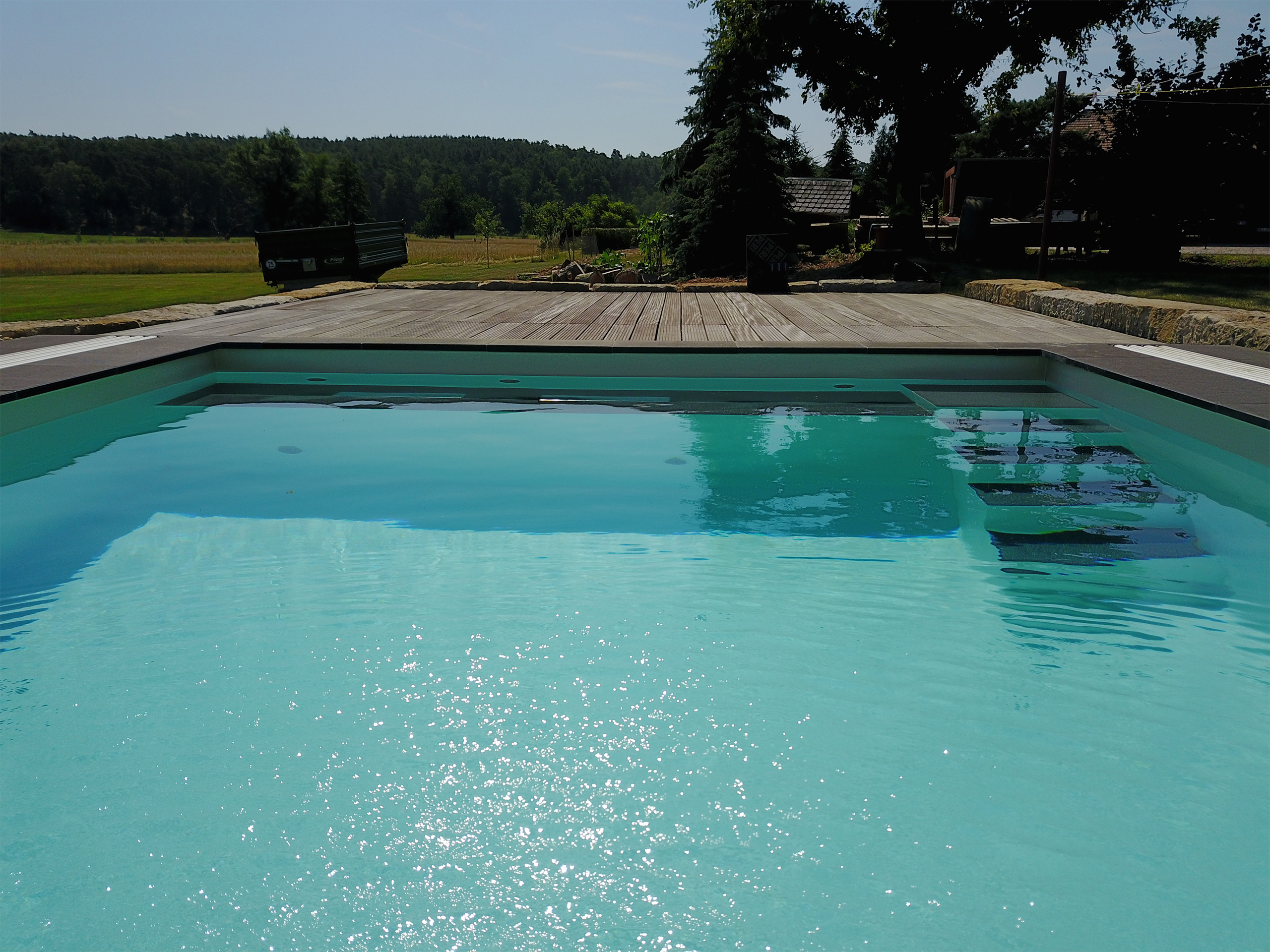 Schwimmbecken 4x7x1,50m mit Ecktreppe, Podest und Gegenstromanlage