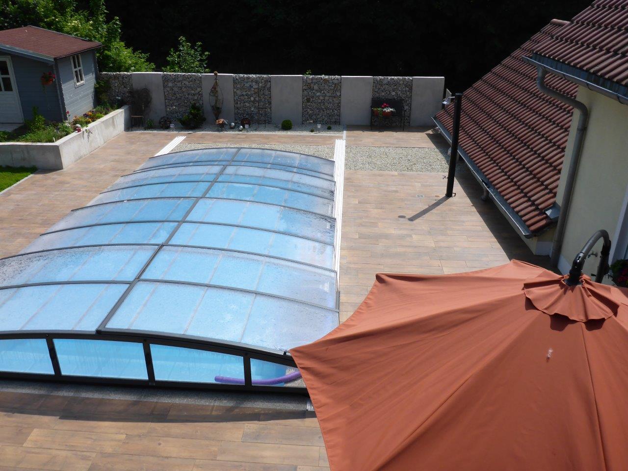 Schwimmbecken 4x8x1,5m mit gerader Treppe, Podest und Überdachung Stuttgart