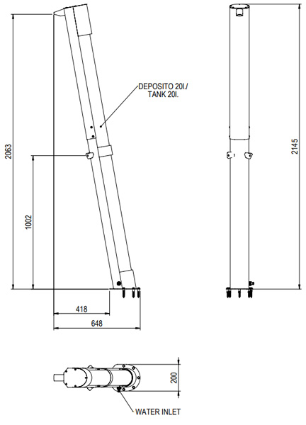 Solardusche mit lackiertem Stahlgehäuse und einem Absperrhahn für kaltes Wasser (Zulauf).