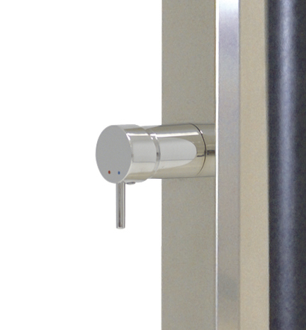 Durch die eingebaute Durchflussverminderung sinkt der Verbrauch annähernd auf 50 %. Weiterhin sind zwei Absperrventile (Kalt- und Warmwasser) vorhanden. Der Ablasshahn ist mit einem ½" Innengewinde versehen. Die Bodenbefestigung erfolgt mittels Verankerungsschrauben und Dübeln. Höhe 2 m.