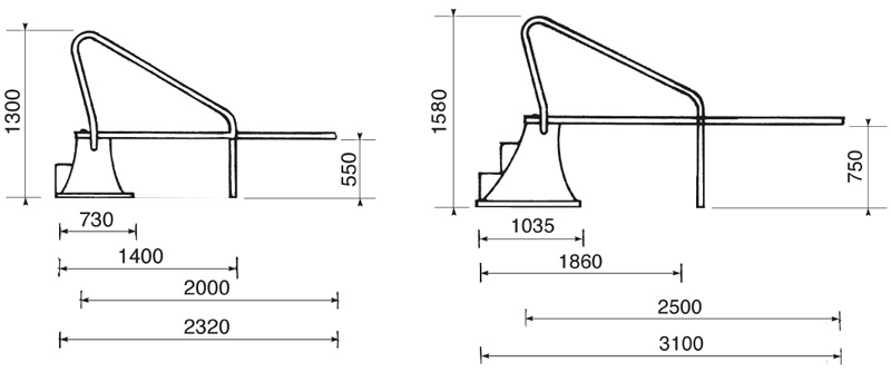 Sprungturm mit Podest und Geländer aus Edelstahl V2A (1.4301).