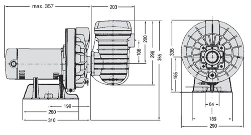 Die eingesetzten Motoren von STA- RITE stammen aus Europa. Bei Wechselstrompumpen ist ein Überlastungsschutz mit eingebaut. Wie u.a. bei den anderen STA RITE Pumpen sorgt hier das Umkehrleitrad für eine sehr effektive Ansaugleistung und Förderhöhen bis zu 22,5m.