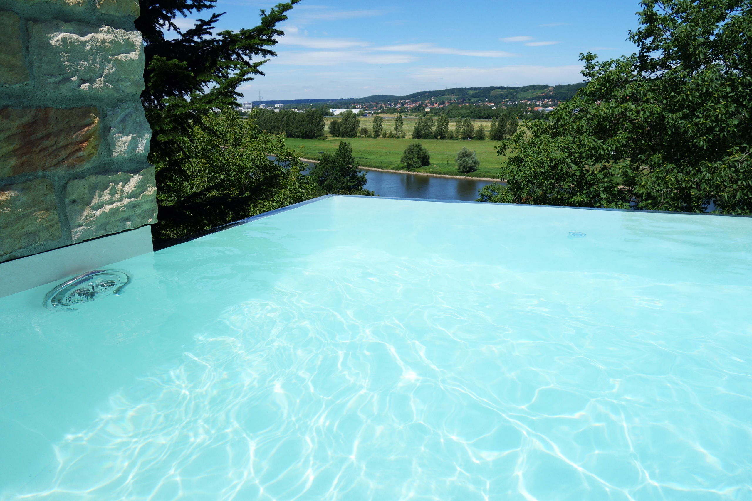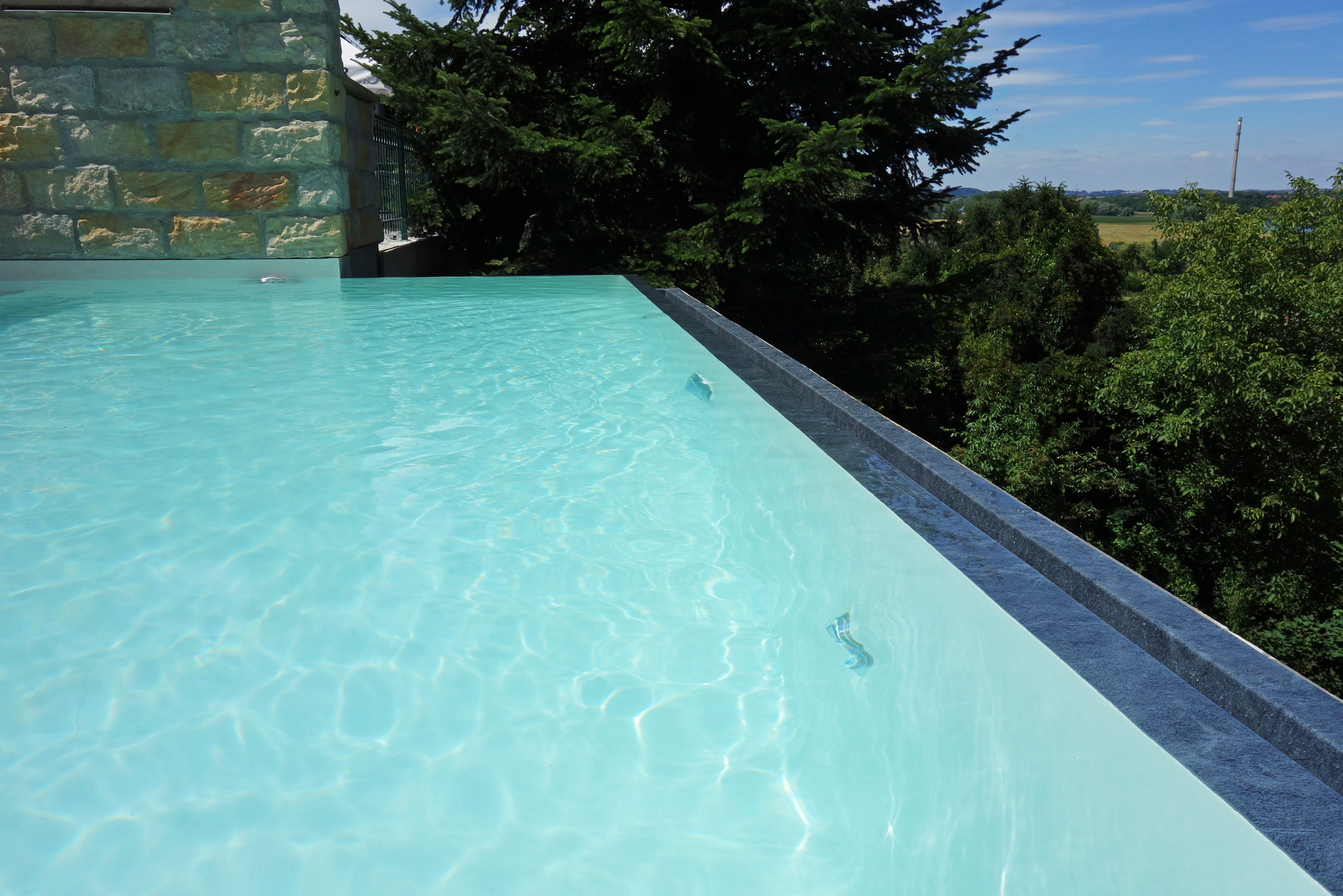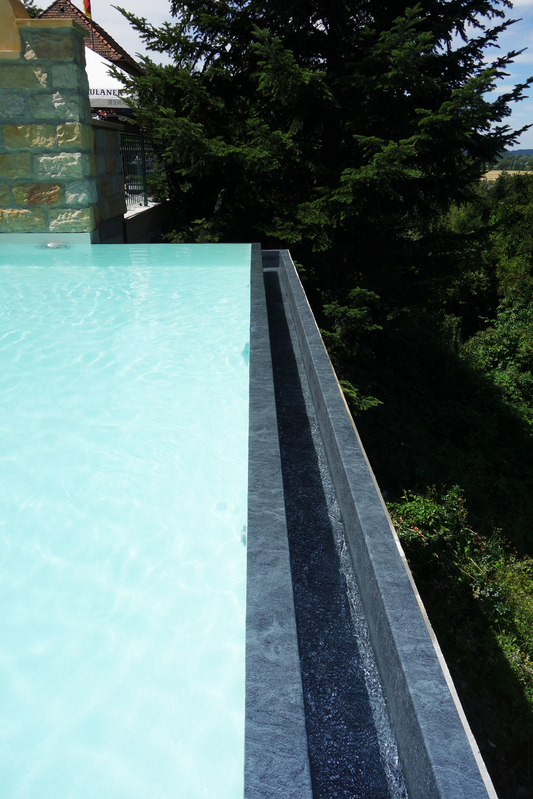Überlaufbecken Infinity Pool 4x7x1,30m mit Ecktreppe und Sitzbank
